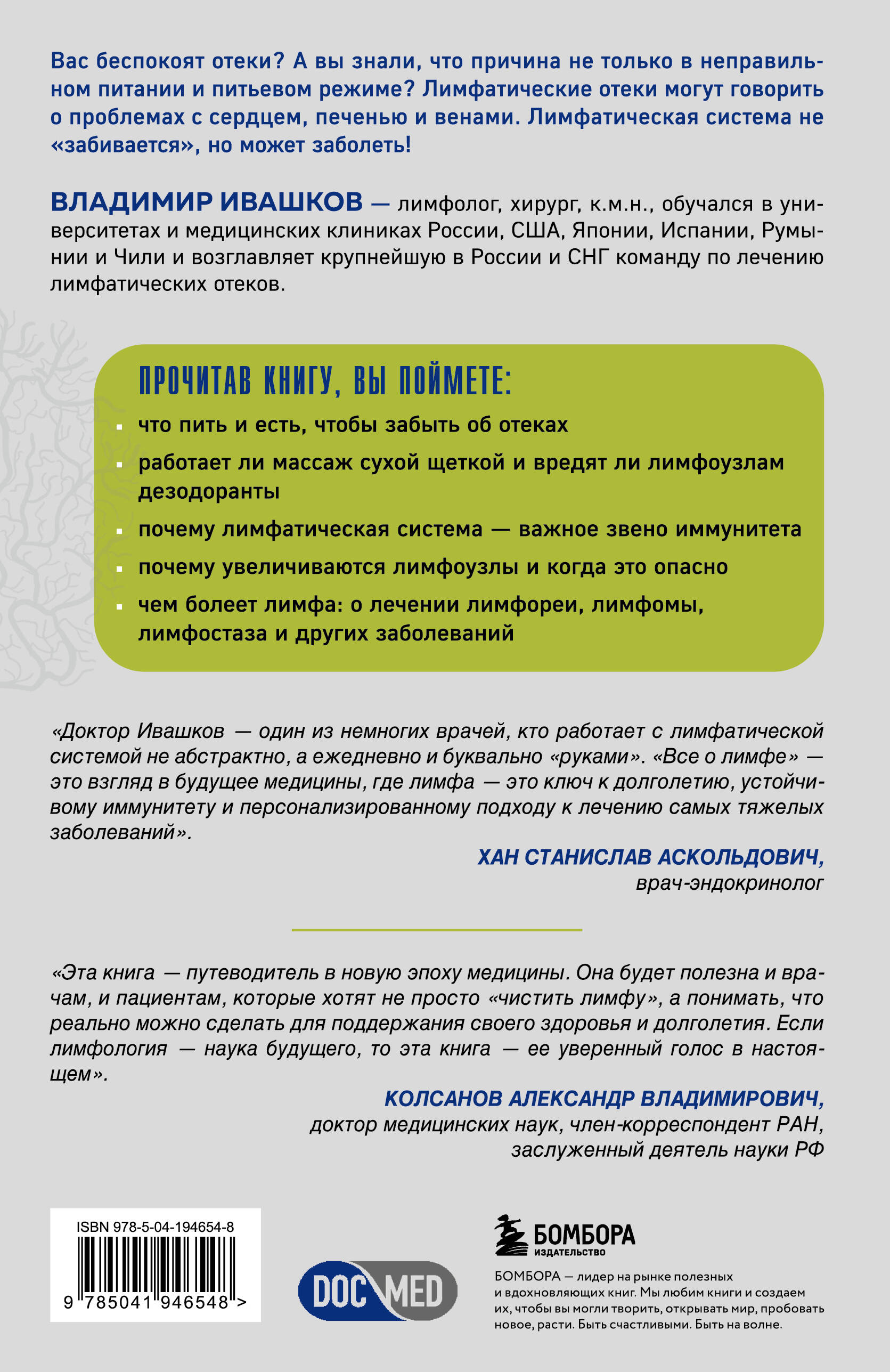 Слышали ли вы, что лимфа выводит токсины из организма, застой лимфы вызывает отеки, а лимфодренажный массаж - панацея? Однако, это только частично правда. Лимфатическая система - одна из самых малоизученных и загадочных систем нашего организма, за что же она на самом деле отвечает? Владимир Ивашков - к.м.н. хирург и лимфолог, главный специалист в России и странах СНГ, кто изучает лимфатическую систему и успешно лечит лимфатические заболевания. Более 15 лет опыта и практики в США, Японии, Испании, Румынии и Чили позволили Ивашкову собрать воедино все, что известно сегодня науке о лимфе. Из-за чего воспаляются лимфоузлы и о каких проблемах говорят отеки? Работают ли травяные чаи, массаж сухой щеткой и прочие техники для «разгона» лимфы? Чем может болеть лимфатическая система и как ее лечить? Как выбрать физическую нагрузку и что делать, если не хочется заниматься спортом? Вы также обнаружите полезные продукты питания от отеков, иллюстрированные техники самомассажа, упражнения для правильного дыхания и сможете качественно повлиять на свое самочувствие.| Издательство | ООО "Издательство "Эксмо" |