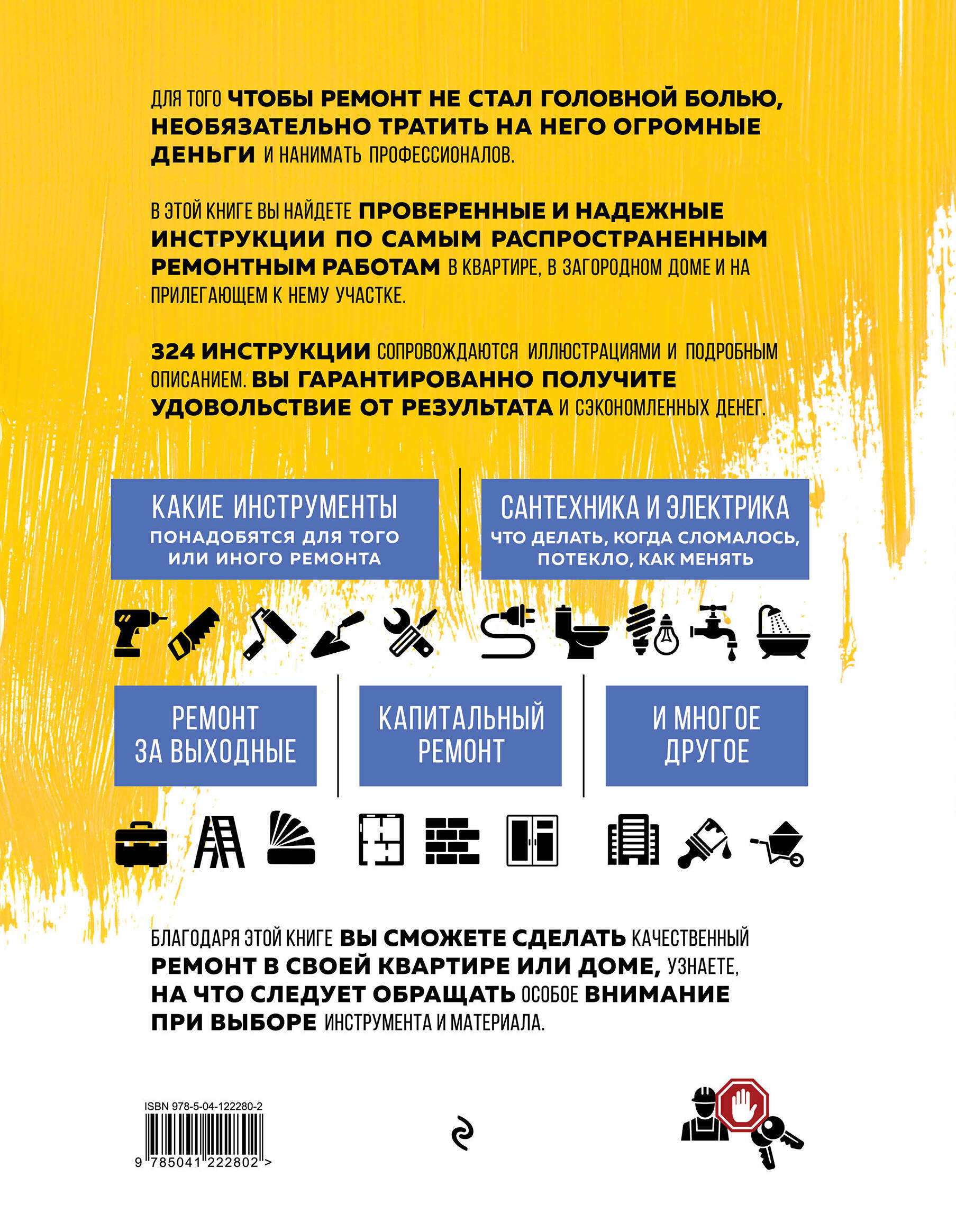 Каждый из нас рано или поздно сталкивается с необходимостью ремонта. Теперь его можно сделать, не прибегая к дорогостоящим услугам профессионалов ! Эта книга поможет вам разобраться во всех тонкостях ремонта и самостоятельно решить любую задачу. Здесь собраны решения и самых распространенных бытовых проблем, и сложностей, с которыми сталкиваются профессиональные мастера. От сантехники и электрики до внешней и внутренней отделки. Все этапы работ сопровождаются подробными пошаговыми инструкциями с фотографиями. Сделайте ремонт сами! Быстро, экономично, качественно! С помощью этой книги вы сможете: - правильно организовать ремонт - выбрать лучшие материалы - решить любые проблемы с сантехникой - выбрать идеальное для вас освещение - самостоятельно повесить люстру - побороть плесень и пятна - без труда удалить старые обои - поменять окна и двери - построить забор И много другое....| Издательство | ООО "Издательство "Эксмо" |