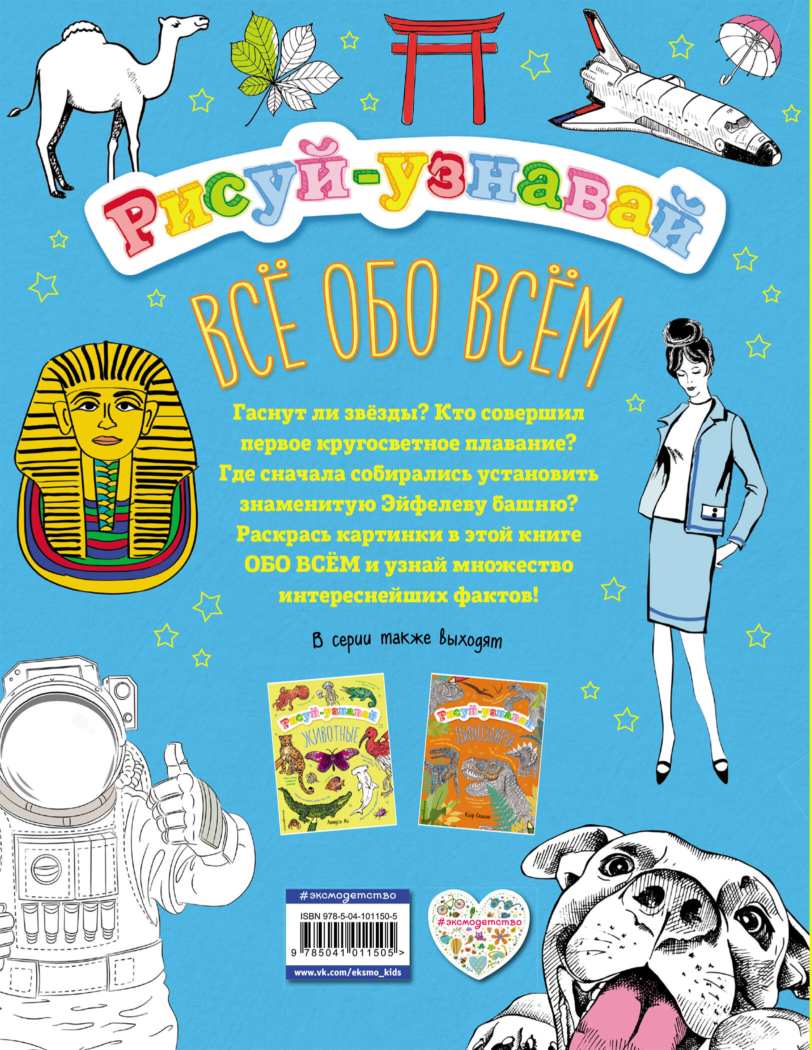 Замечательная серия познавательных раскрасок для любителей фактов! Книга "Все обо всем" наполнена интереснейшими фактами и потрясающими рисунками для раскрашивания. Узнавай много нового о науке, искусстве, традициях разных народов и живой природе самым нескучным способом!| Издательство | ООО "Издательство "Эксмо" |