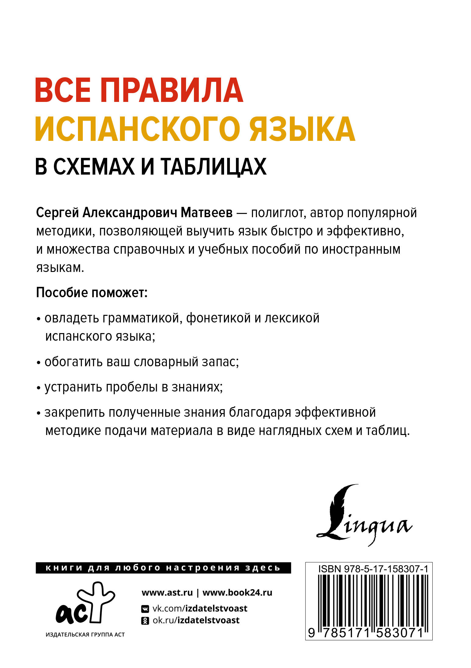 Аннотация: Все правила испанского языка в схемах и таблицах