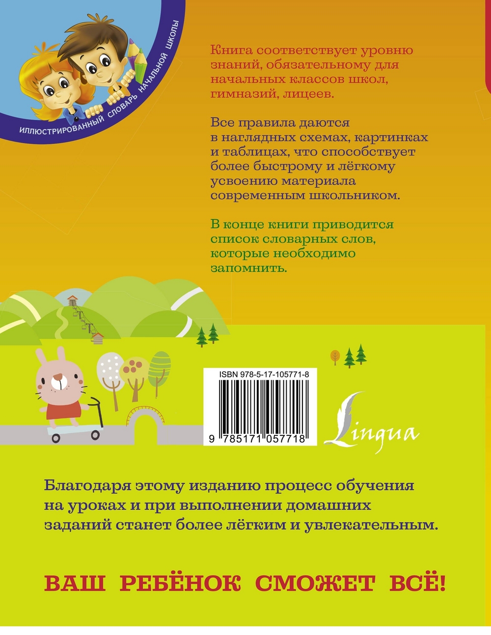В книгу включены правила русского языка в соответствии с учебной программой 1-4 классов. Правила даются в наглядных схемах, что способствует легкому восприятию и быстрому усвоению материала современным школьником. Кроме того, издание содержит большое количество картинок, которые концентрируют внимание ребенка и помогают запомнить правильное написание слов.