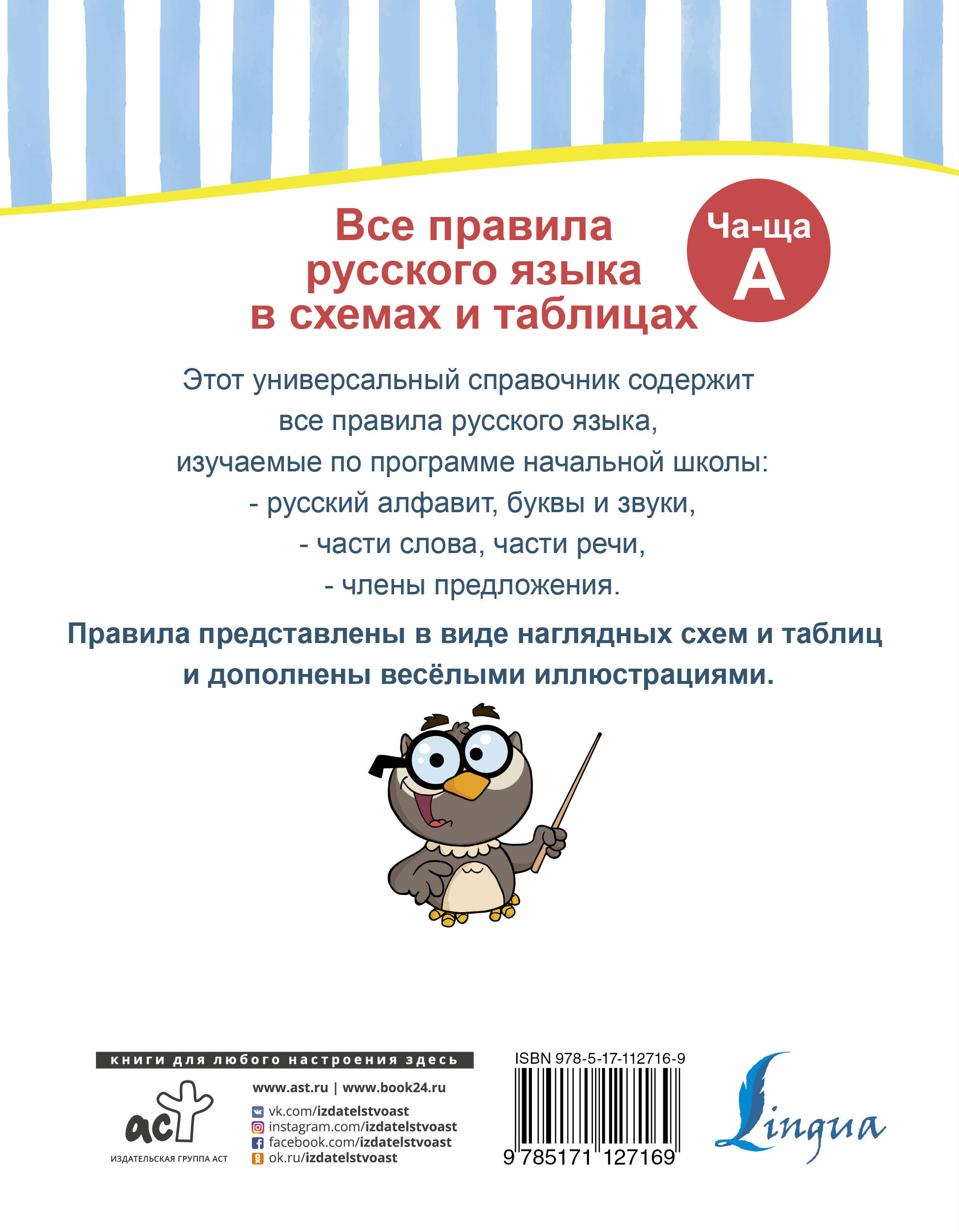В данное пособие вошли все правила русского языка, изучаемые по программе начальной школы. Правила даны в наглядных схемах и таблицах, что способствует быстрому усвоению материала современным школьником. Для эффективного запоминания орфографические правила и исключения представлены с помощью ярких и веселых картинок. Пособие предназначено для учащихся начальных классов, а также будет полезно родителям и учителям.| Издательство | ИЗДАТЕЛЬСТВО "АСТ" |