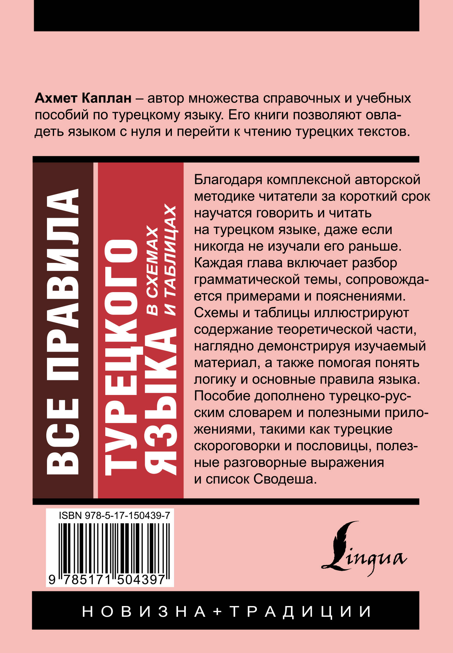 Ахмет Каплан - автор множества справочных и учебных пособий по турецкому языку. Его книги позволяют овладеть языком с нуля и перейти к чтению турецких текстов. Каждая глава включает разбор грамматической темы, сопровождается примерами и пояснениями. Схемы и таблицы иллюстрируют содержание теоретической части, наглядно демонстрируя изучаемый материал, а также помогая понять логику и основные правила языка. Пособие дополнено турецко-русским словарем и полезными приложениями, такими как турецкие скороговорки и пословицы, полезные разговорные выражения и список Сводеша.