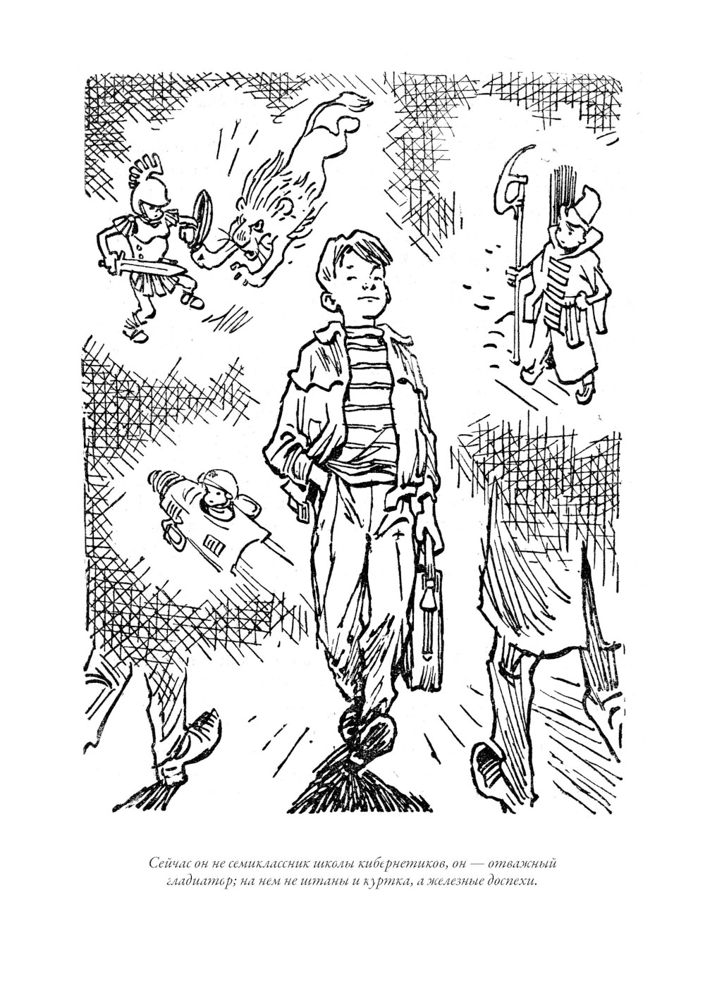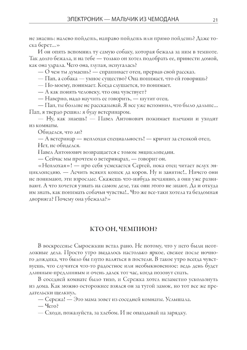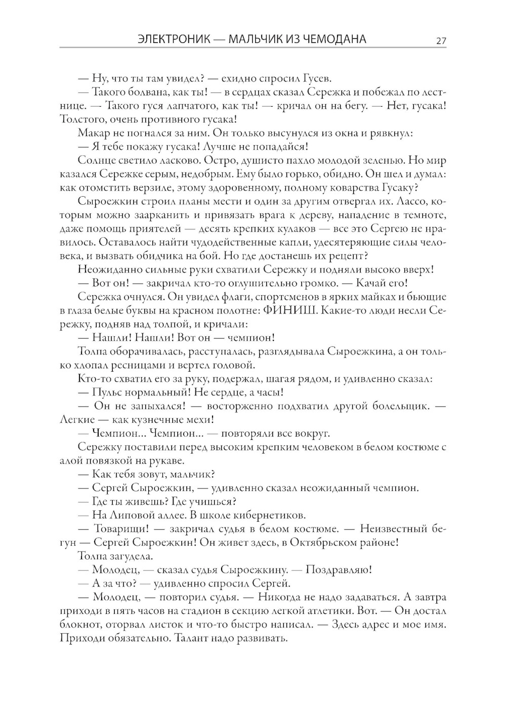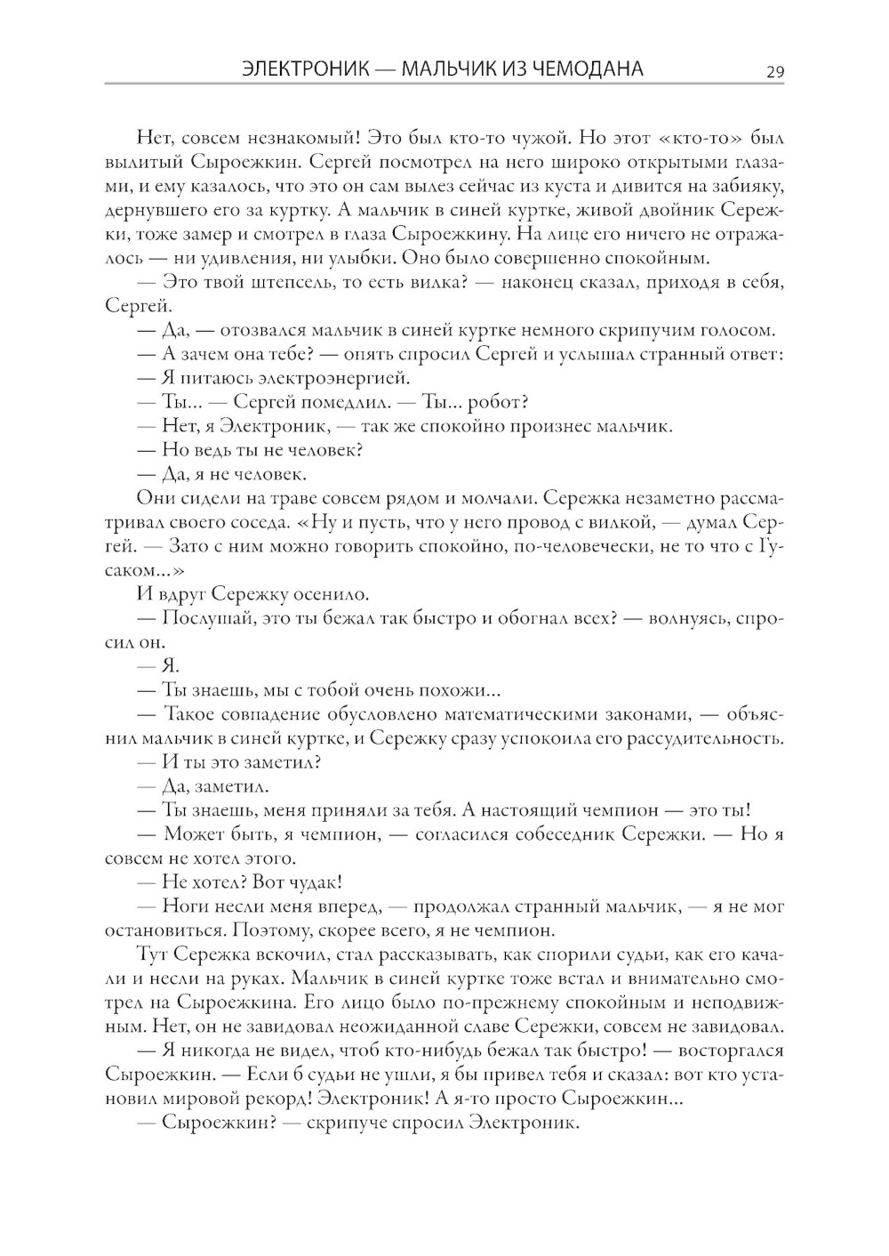 Журналист по образованию Евгений Серафимович Велтистов смог занять в отечественной литературе второй половины XX века совершенно особое место. Одним из первых он начал писать фантастические повести для детей. Первое его сочинение в таком жанре - «Приключения на дне моря» - было опубликовано в 1960 году. Четыре года спустя Велтистов выпустил новую книгу, в которой обыгрывался прием двойников, эффектно разыгранный Марком Твеном в «Принце и нищем». Только у Евгения Серафимовича в соответствии с духом времени один герой стал бойким советским мальчишкой, а второй, как две капли на него похожий, - роботом! Такой прием, помноженный на литературный талант Велтистова, сработал, и со временем истории про приключения Электроника вылились в целую серию повестей. Все они собраны под одной обложкой в этом издании. Евгений Серафимович писал фантастику и для взрослых. Его перу принадлежат повесть «Глоток Солнца. Записки программиста Марта Снегова» и роман «Ноктюрн пустоты», однако именно приключения электронного мальчика стали своеобразной визитной карточкой писателя, который начал разрабатывать тему андроидов задолго до начала эры искусственного интеллекта. Причем делал он это легко, увлекательно, с юмором. В этом и кроется непреходящий интерес читателей самого разного возраста к приключениям Электроника. Рисунки в этой книге выполнены Евгением Тихоновичем Мигуновым. Главная их отличительная черта - необычайный динамизм и выразительность. Нарисованные художником персонажи почти всегда изображены в движении, и это неслучайно, ведь Евгений Тихонович много лет проработал в анимационном кино. В 1939 г. он поступил на художественный факультет Всероссийского государственного института кинематографии, где начал заниматься в мастерской под руководством знаменитого Иванова-Вано. Окончив ВГИК, Мигунов стал не обычным художником-мультипликатором, а настоящим новатором рисованного и кукольного кино. Его творческие наработки сыграли важную роль в становлении современной школы русской мультипликации. Мигунов придумывал новые приемы, патентовал изобретения, помогавшие оживлять кукол, предлагал новые режиссерские приемы. С 1961 г. Евгений Тихонович начал сотрудничать с журналами «Мурзилка», «Веселые картинки», «Пионер», «Крокодил», делая для них многочисленные иллюстрации. В 1965 г. именно с его рисунками вышла ставшая знаменитой повесть братьев Стругацких «Понедельник начинается в субботу». По манере и технике они были очень похожи на его иллюстрации к повестям Велтистова, которые украшают эту книгу.