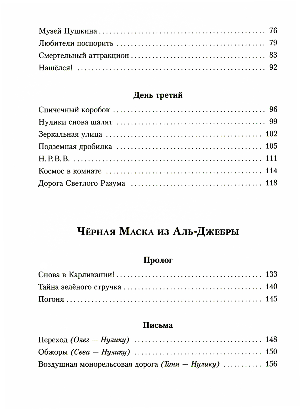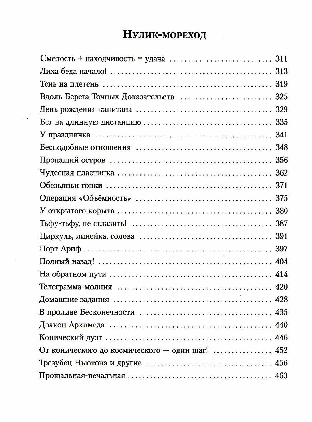 Маленький, но очень любознательный житель страны чисел Нулик приглашает в захватывающее путешествие по миру самой точной из наук! Вам предстоит провести три ярких дня в Арифметическом государстве Карликания, раскрыть тайну Чёрной Маски из Аль-Джебры и стать, подобно Нулику, настоящими мореходами во время плавания по геометрическим морям и океанам. Простые и десятичные дроби, отрицательные числа, степени и уравнения, объёмы тел и площади фигур - всё это и многое другое становится понятным и невероятно увлекательным, рождая подлинный интерес к математическим паукам.| Издательство | ИД Мещерякова |