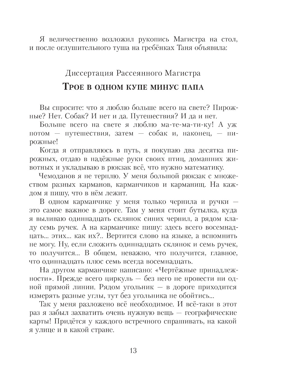 Герои этой трилогии, незадачливый путешественник Магистр Рассеянных Наук и его неизменная спутница Единичка, попадают в экзотические страны, катаются на льдине, гуляют по кратеру вулкана, а также подбирают математические ключи к любому замку и решают задачи. Вместе с ними ты легко запомнишь даже самые сложные правила математики, физики и астрономии.| Издательство | ИД Мещерякова |