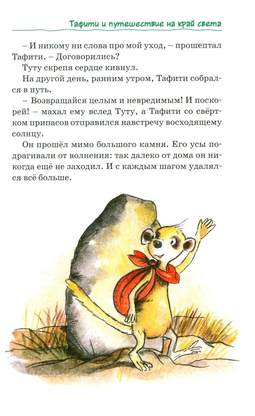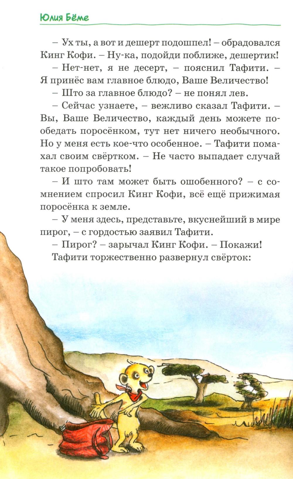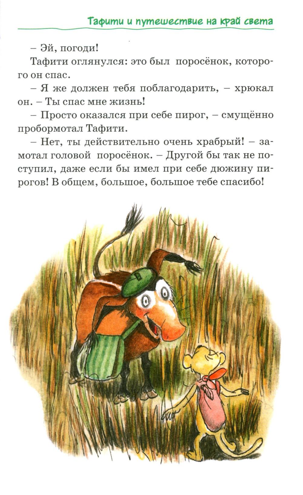 Тафити с Кисточкой - лучшие во всей саванне друзья! Встретившись однажды по дороге на край света, любознательный сурикат и добродушный кистеухий поросёнок стали неразлучны. Благодаря смелости, находчивости и дружелюбию герои могут справиться с любыми трудностями - и всегда успевают вернуться домой к ужину. Весёлые и захватывающие истории о Тафити, созданные знаменитой немецкой писательницей Юлией Бёме, легли в основу полнометражного мультфильма «Тафити. Приключения на краю света». Смотрите в кинотеатрах уже этой осенью!| Издательство | Махаон |
