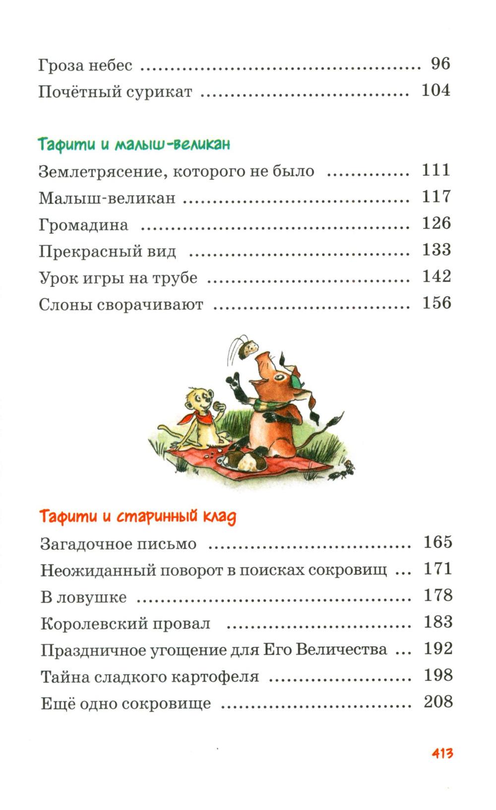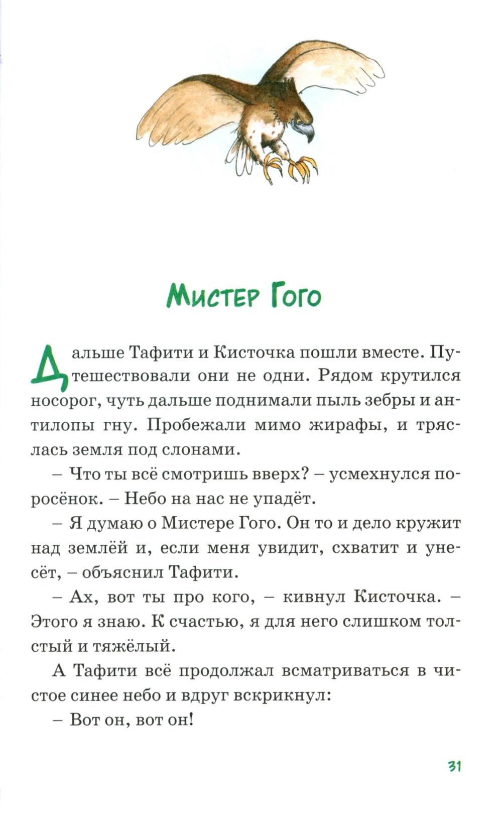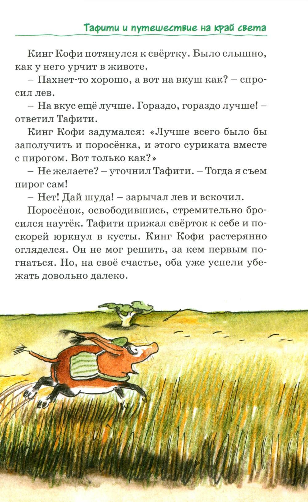 Тафити с Кисточкой - лучшие во всей саванне друзья! Встретившись однажды по дороге на край света, любознательный сурикат и добродушный кистеухий поросёнок стали неразлучны. Благодаря смелости, находчивости и дружелюбию герои могут справиться с любыми трудностями - и всегда успевают вернуться домой к ужину. Весёлые и захватывающие истории о Тафити, созданные знаменитой немецкой писательницей Юлией Бёме, легли в основу полнометражного мультфильма «Тафити. Приключения на краю света». Смотрите в кинотеатрах уже этой осенью!| Издательство | Махаон |