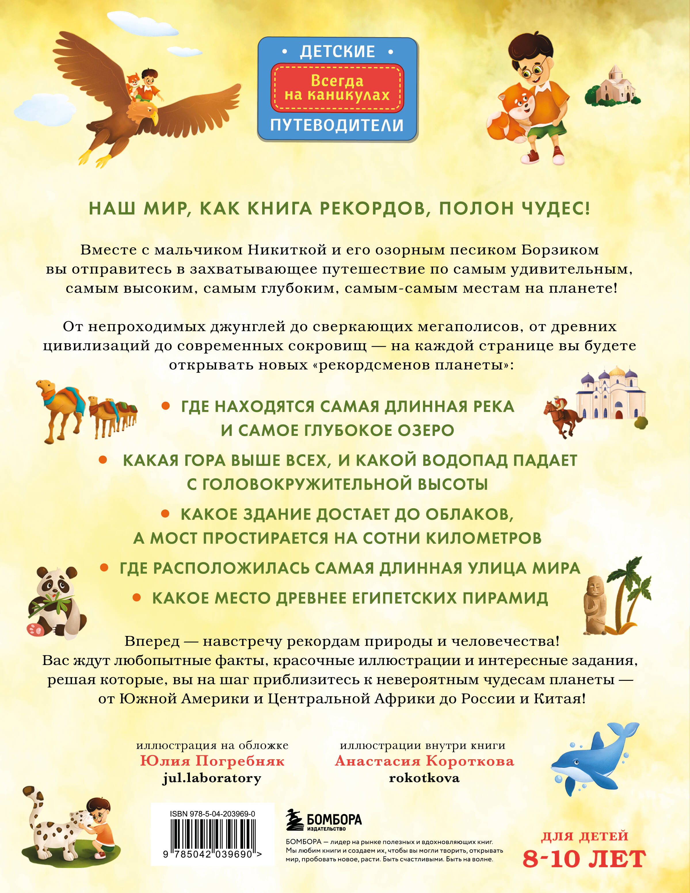 Вы готовы к захватывающему путешествию по удивительным местам Земли? В этой книге вы найдете самые невероятные мировые рекорды, которые поразят ваше воображение и расширят горизонты знаний! Присоединяйтесь к нашим героям в их захватывающем приключении. Вместе с Никиткой и Борзиком вы узнаете: • Где находятся самая длинная река и самое глубокое озеро. • Какая гора выше всех и какой водопад падает с головокружительной высоты. • Какое здание достает до облаков, а мост простирается на сотни километров. • Где расположилась самая длинная улица мира. • Какое место древнее Египетских пирамид. Уникальные факты, увлекательные истории и интерактивные задания, а также яркие иллюстрации, помогут вам не только погрузится с головой в чтение, но и закрепить полученные знания. Не упустите шанс стать частью этой невероятной истории!| Издательство | ООО "Издательство "Эксмо" |
