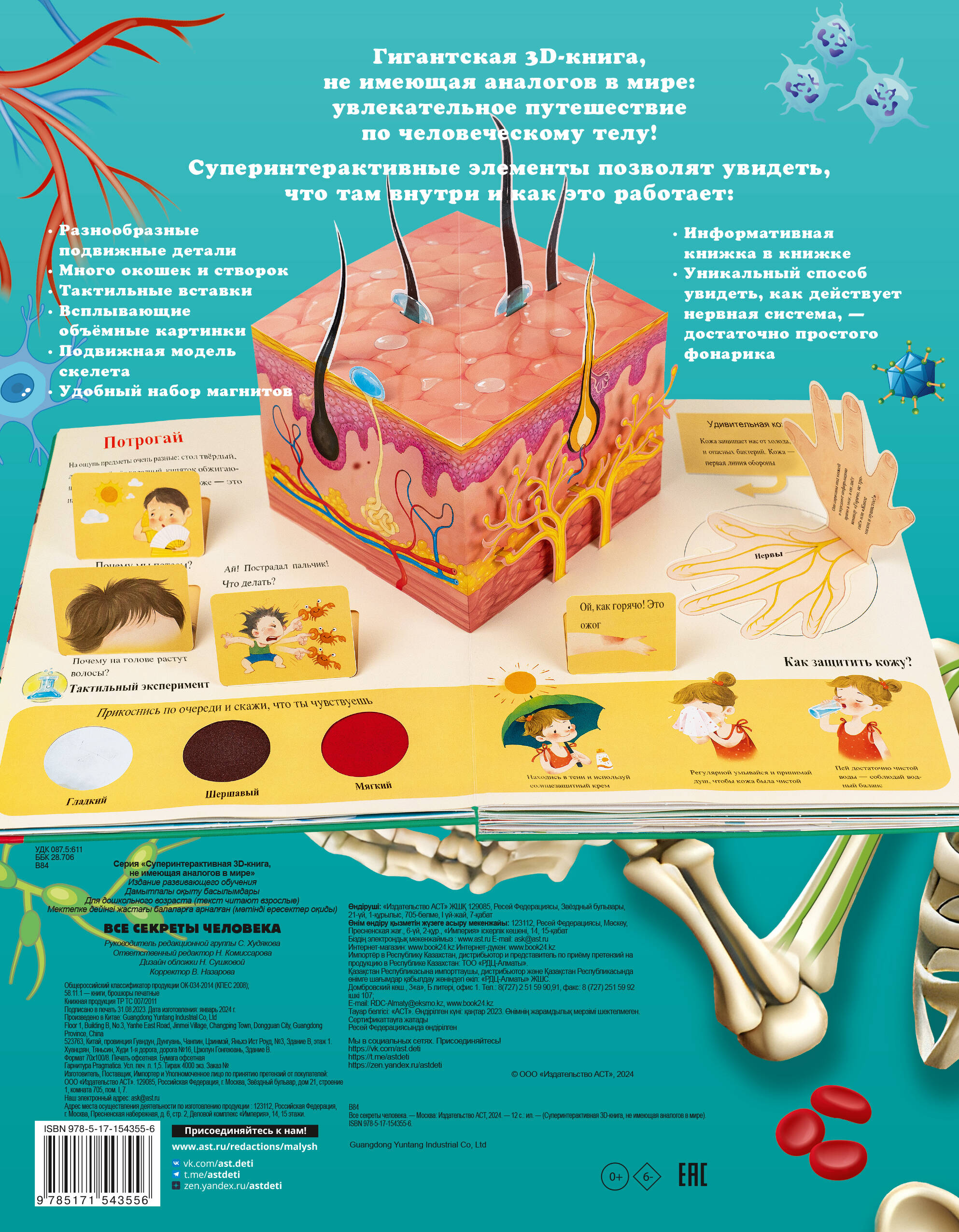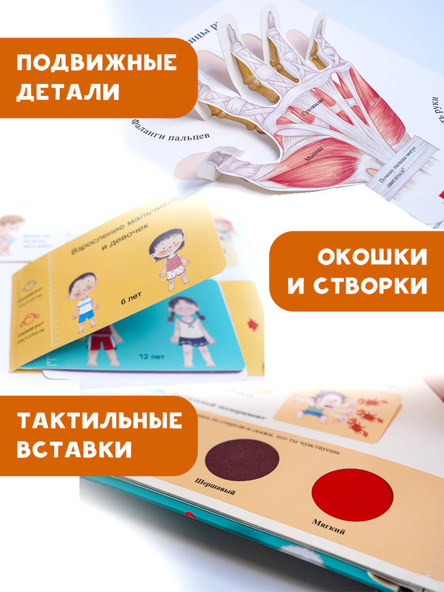 Это лучшая детская книга по анатомии - гигантская 3D-книга, не имеющая аналогов в мире: увлекательное путешествие по человеческому телу в интерактивном формате. Здесь есть всё! Суперинтерактивные элементы позволят увидеть, что там внутри и как это работает: разнообразные подвижные детали, много окошек и створок, тактильные вставки, всплывающие объемные картинки, подвижная модель скелета, удобный набор магнитов, информативная книжка в книжке, уникальный способ увидеть, как действует нервная система, - достаточно простого фонарика! Все ответы на вопросы детей о теле и прекрасный подарок для маленьких почемучек.| Издательство | Издательство "АСТ" |