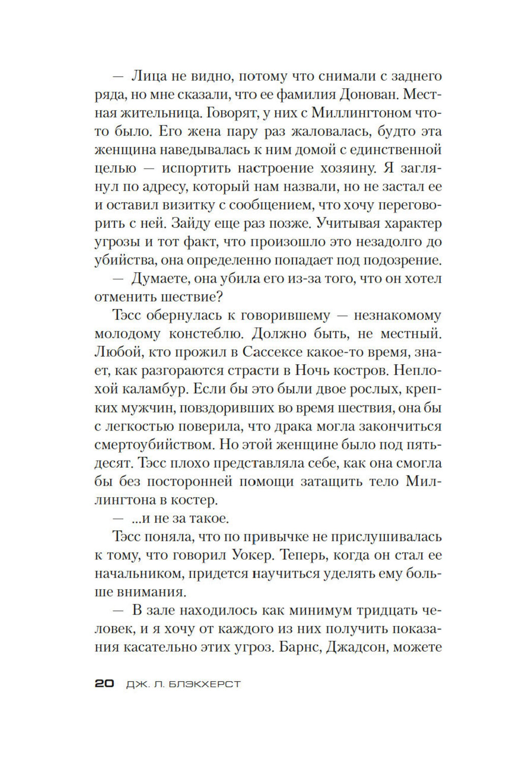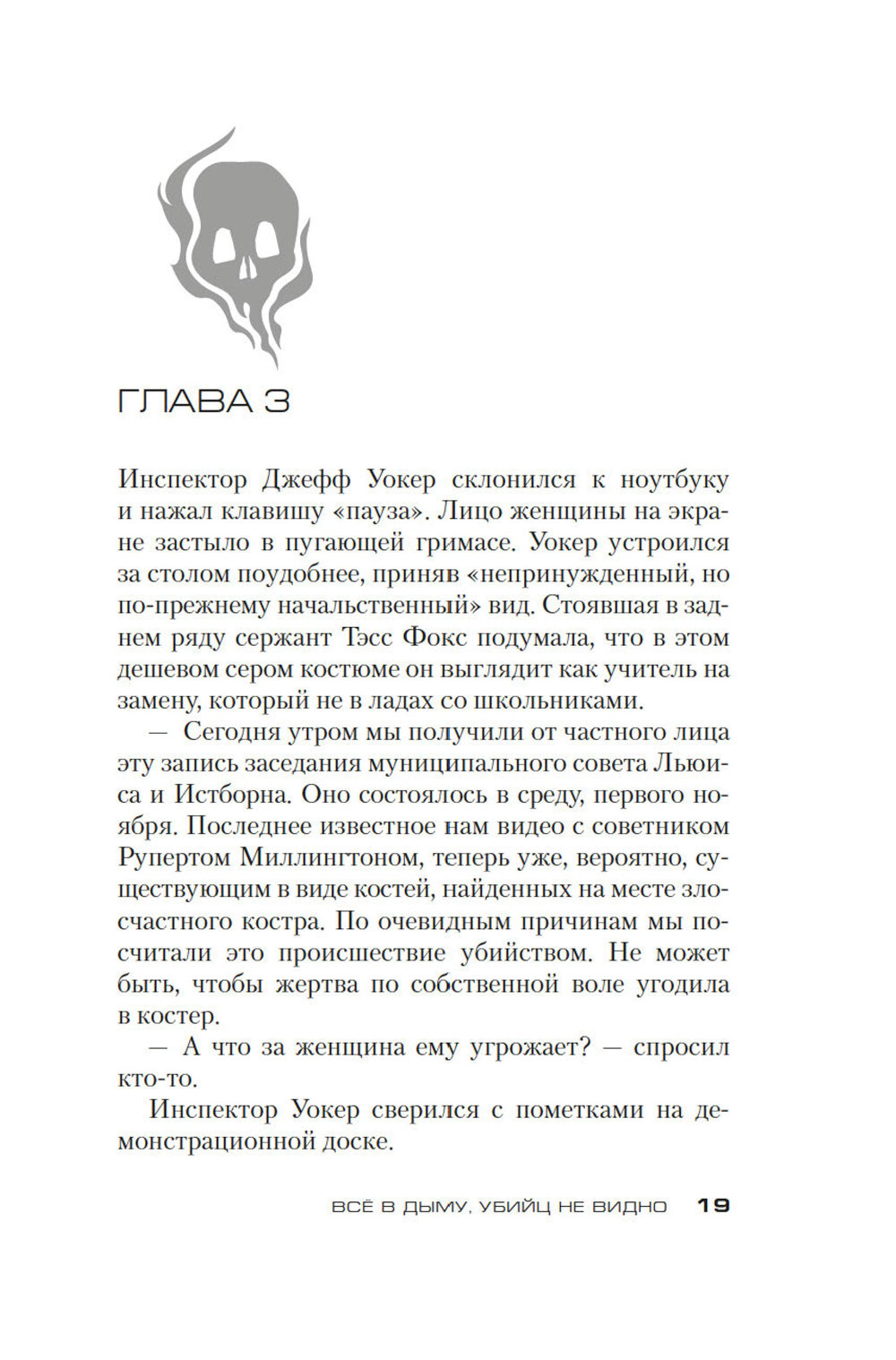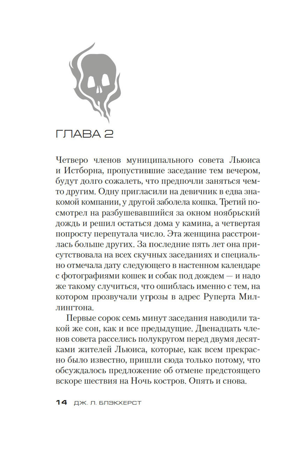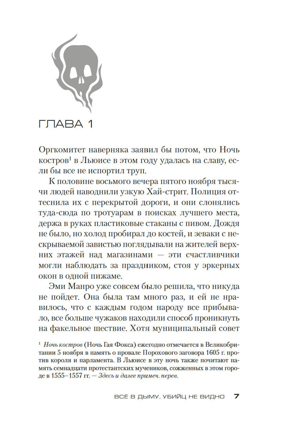 В 1605 году провалился Пороховой заговор против короля и парламента, и с тех пор в Великобритании ежегодно 5 ноября отмечают Ночь костров. Особый размах празднование приобретает в городе Льюисе, где в эту ночь также почитают память семнадцати протестантских мучеников, сожженных в 1555-1557 годах. В этом году Ночь костров в Льюисе удалась бы на славу, если бы все не испортил труп. На глазах у тысяч участников факельного шествия из головы сгоревшего чучела Дональда Трампа выкатился настоящий человеческий череп. Никто не знает, как внутри чучела оказались останки члена муниципального совета. По городу расползаются слухи. Главный подозреваемый, желая восстановить свое доброе имя, обращается за помощью к сотруднице полиции Тэсс Фокс. У нее есть сестра Сара Джейкобс, аферистка по натуре, наделенная талантом раскрывать преступления. Этот необыкновенный дуэт уже выступил с блеском в романе «Туз, дама, смерть», и теперь ему предстоит новое расследование.| Издательство | Азбука |