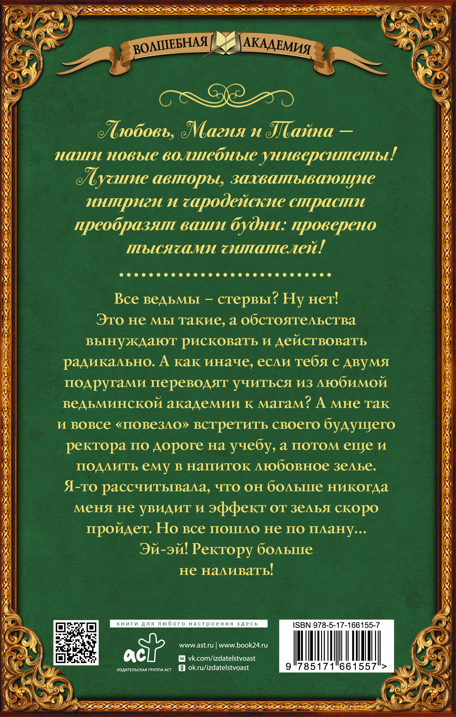 Все ведьмы - стервы? Ну нет! Это не мы такие, а обстоятельства вынуждают рисковать и действовать радикально. А как иначе, если тебя с двумя подругами переводят учиться из любимой ведьминской академии к магам? А мне так и вовсе "повезло" встретить своего будущего ректора по дороге на учебу, а потом еще и подлить ему в напиток любовное зелье. Я-то рассчитывала, что он больше никогда меня не увидит и эффект от зелья скоро пройдет. Но все пошло не по плану. Эй-эй! Ректору больше не наливать!