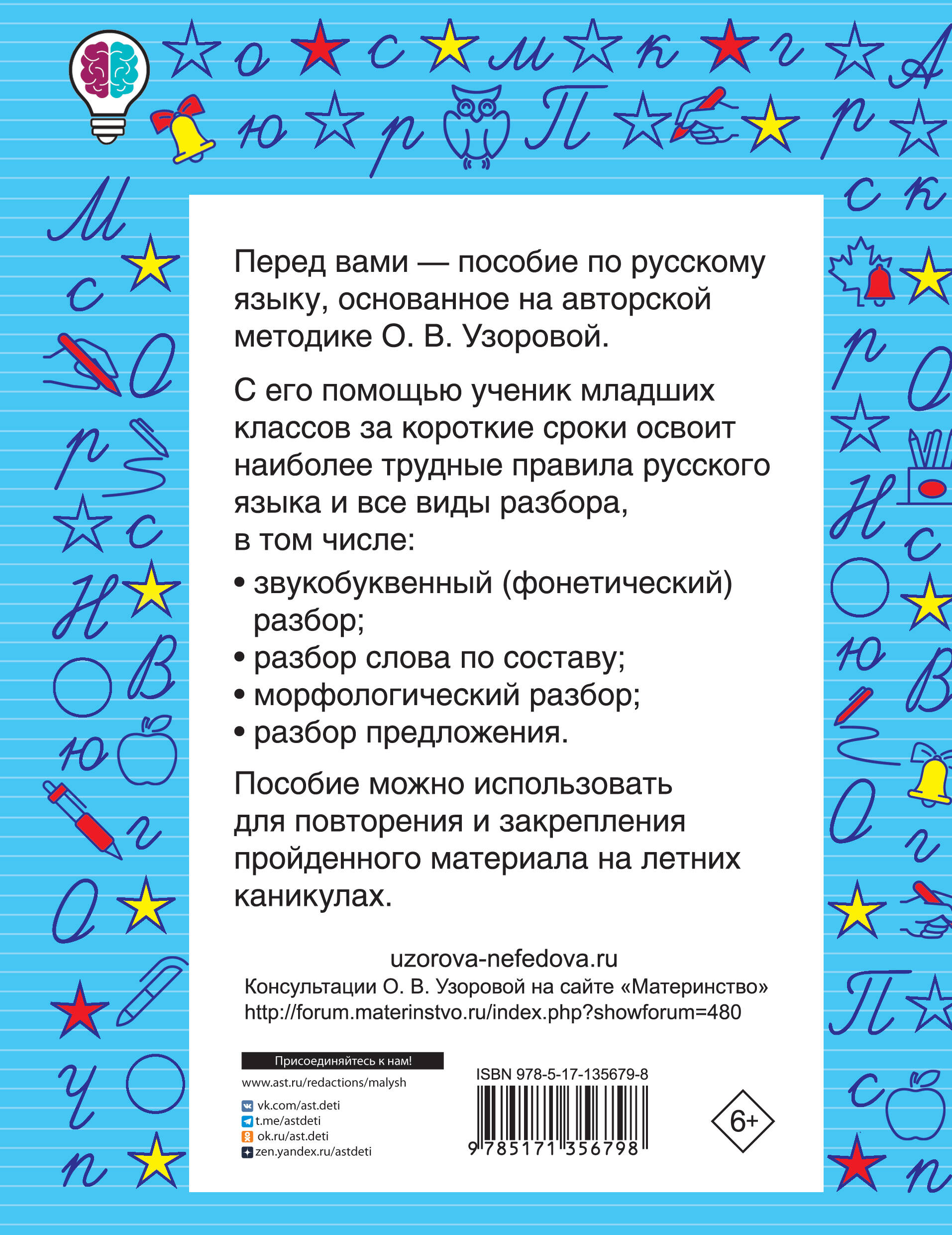 В книге представлены все виды разбора слов, в том числе фонетический, разбор по составу, морфологический, синтаксический и орфографический. Пособие поможет школьникам подготовиться к контрольным и проверочным работам.| Издательство | ИЗДАТЕЛЬСТВО "АСТ" |