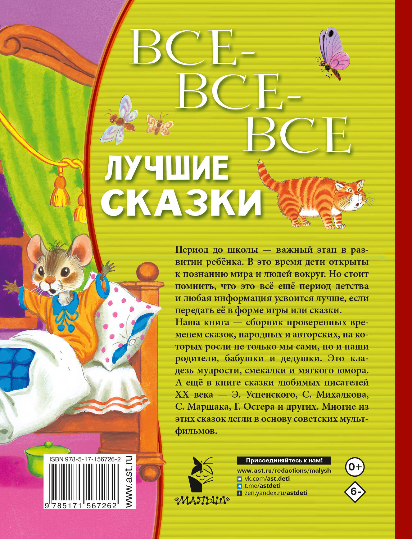 Период до школы - важный этап развития ребёнка. В это время дети открыты к познанию мира и людей вокруг. Но стоить помнить, что это всё ещё период детства, и любая информация усвоится лучше, если передать её в форме игры или сказки. Наша книга - сборник проверенных временем сказок, на которых росли мы сами, наши родители, бабушки и дедушки. Это кладезь народной мудрости, смекалки и мягкого юмора. Также в книге читатель найдёт и сказки любимых писателей XX века - Э. Успенского, С. Михалкова, С. Маршака, Г. Остера и других, по многим из которых в советское время были сняты мультфильмы.| Издательство | ИЗДАТЕЛЬСТВО "АСТ" |