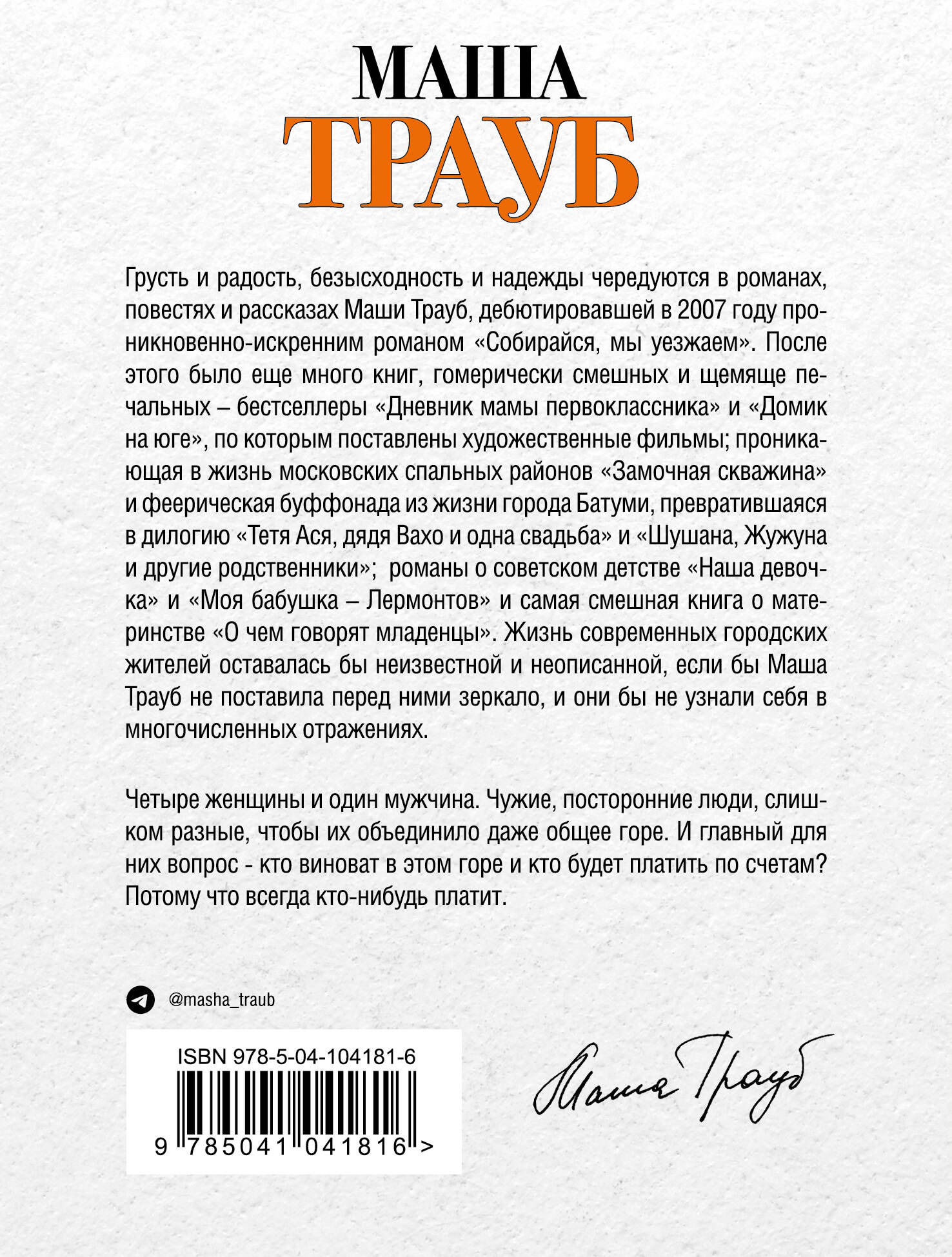 Толстовская фраза про счастливые и несчастливые семьи стала настолько расхожей, что известна каждому школьнику, но от этого она не перестаёт быть справедливой. Маша Трауб рассказывает именно о несчастливых. В какой момент рвётся связь между близкими людьми? Когда и почему они становятся врагами? А главное - кто будет платить по счетам? Потому что всегда кто-то платит.| Издательство | ООО "Издательство "Эксмо" |