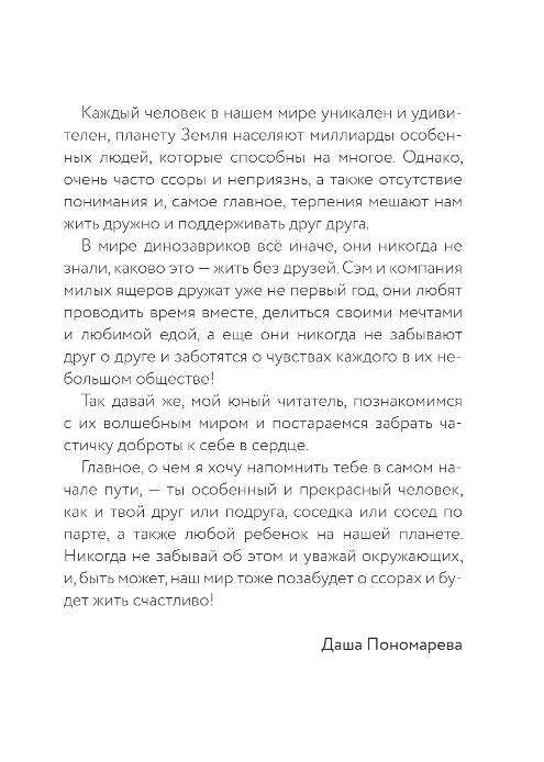 Каждый ребенок - уникален. Однако, некоторым необ ходимо чуть больше внимания и деликатного обраще ния. РАССТРОЙСТВО АУТИСТИЧЕСКОГО СПЕКТРА (РАС) - ЭТО РАССТРОЙСТВО ПСИХИКИ, КОТОРОЕ СОХРАНЯЕТСЯ НА ПРОТЯЖЕНИИ ВСЕЙ ЖИЗНИ ЧЕ ЛОВЕКА. Таким детям сложнее находиться в коллективе и строить новые отношения, поэтому нередко их сторонятся. Это происходит исключительно из-за нехватки информации. Внутри Комикса вы найдете интерактивную историю про Динозаврика Сэма и его друзей. А также интерес ные задания, которые помогут научиться взаимодей ствовать с детьми с РАС.| Издательство | Яуза-каталог ООО |