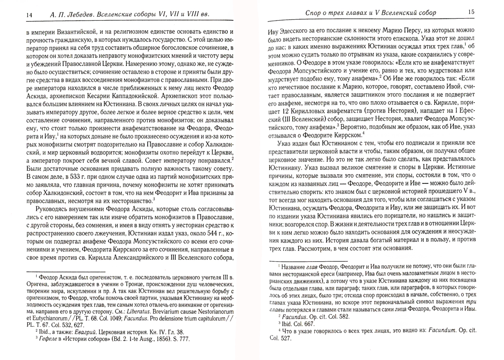 Алексей Петрович Лебедев (1845-1908) - выдающийся русский историк Церкви, автор трудов преимущественно по истории Византийской церкви, заслуженный профессор Императорской Московской духовной академии и профессор Московского университета. Его работа "Вселенские соборы VI, VII и VIII вв." посвящена истории борьбы Вселенской церкви с ересями монофизитства, монофелитства и иконоборчества, временное преуспеяние которых не смогло превозмочь соборного разума Церкви под водительством Св. Духа и конечного торжества Православия.