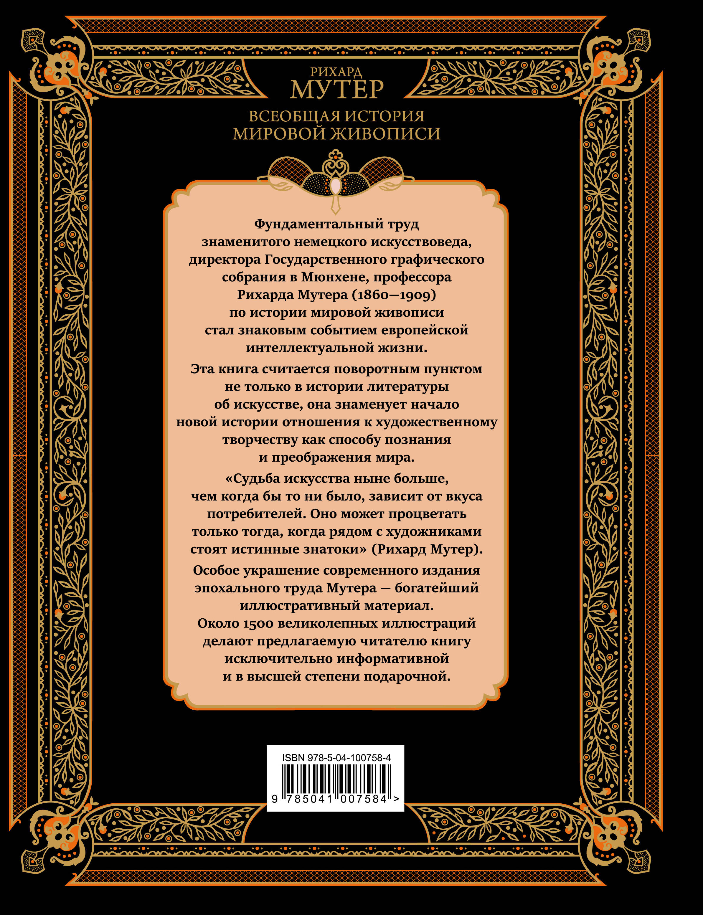 История живописи, насчитывающая тысячи лет, неотделима от истории развития цивилизации. Живопись - это вечный поиск совершенного образа ускользающего мира, в котором отражается сам человек со всеми своими достоинствами и слабостями. «Всеобщая история живописи» всемирно известного немецкого искусствоведа Рихарда Мутера, собравшего поистине колоссальный материал по истории изобразительного искусства стран мира, - это возможность вновь пережить наиболее волнующие и запоминающиеся моменты этого вечного движения человечества к идеалу.| Издательство | ООО "Издательство "Эксмо" |