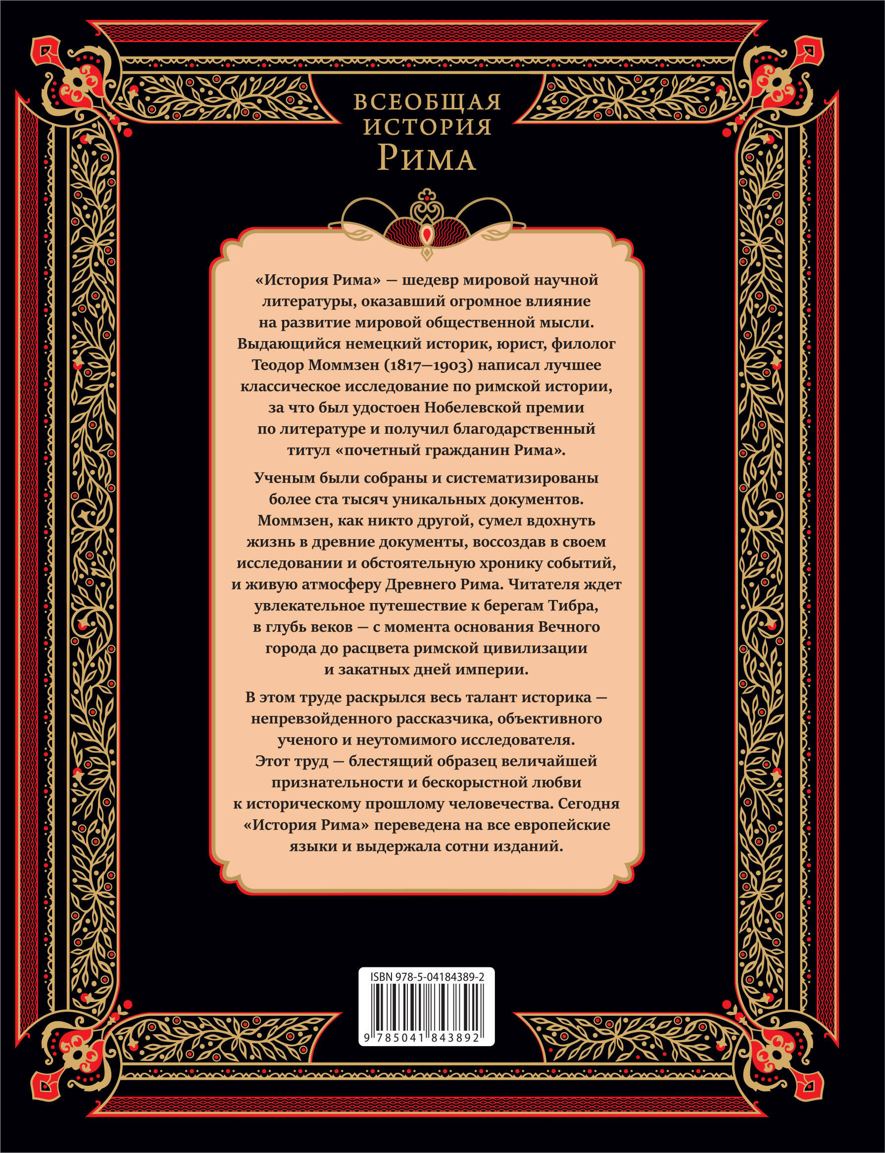 Теодор Моммзен - выдающийся немецкий историк и писатель, лауреат Нобелевской премии. Его значительный вклад в литературу заключается в его способности увлечь читателя античной культурой и философией. Он успешно передал дух времени и сложности человеческих отношений в своей интерпретации римской истории, что вдохновило таких авторов, как Томас Манн и Райнер Мария Рильке. Моммзен стал мостом между классической историей и современным литературным поиском, пролагая путь для дальнейших исследований и обзоров. Его наиболее известное произведение «История Рима» не только стало важным вкладом в историографию, но и оказало значительное воздействие на развитие исторического и художественного подходов в литературе. Моммзен умело сочетал точность научного анализа с яркой повествовательной стилистикой, что сделало его труды доступными для широкой аудитории. Его наследие продолжает оставаться актуальным, демонстрируя, как глубокое понимание прошлого может обогатить современное восприятие литературы и истории. Погрузитесь в мир античности, воссозданный уникальным культурным деятелем, оставившим неизгладимый след в мировой литературе. О серии: «Всеобщая история» - это великолепные издания, каждое из которых прекрасно проиллюстрировано многочисленными цветными и черно-белыми иллюстрациями. Каждая книга богато оформлена тончайшим золотым тиснением и станет прекрасным подарком для самого взыскательного читателя и коллекционера.| Издательство | ООО "Издательство "Эксмо" |