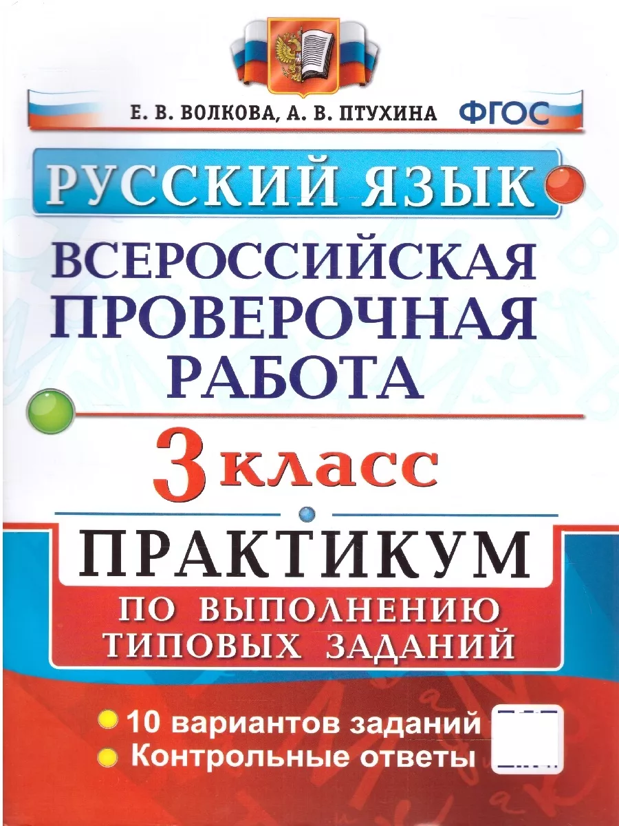 ВСЕРОССИЙСКАЯ ПРОВЕРОЧНАЯ РАБОТА. РУССКИЙ ЯЗЫК. 3 КЛАСС. ПРАКТИКУМ ПО ВЫПОЛНЕНИЮ ТИПОВЫХ ЗАДАНИЙ. 10 вариантов заданий. Контрольные ответы. ФГОС.| Издательство | Издательство «Экзамен» |