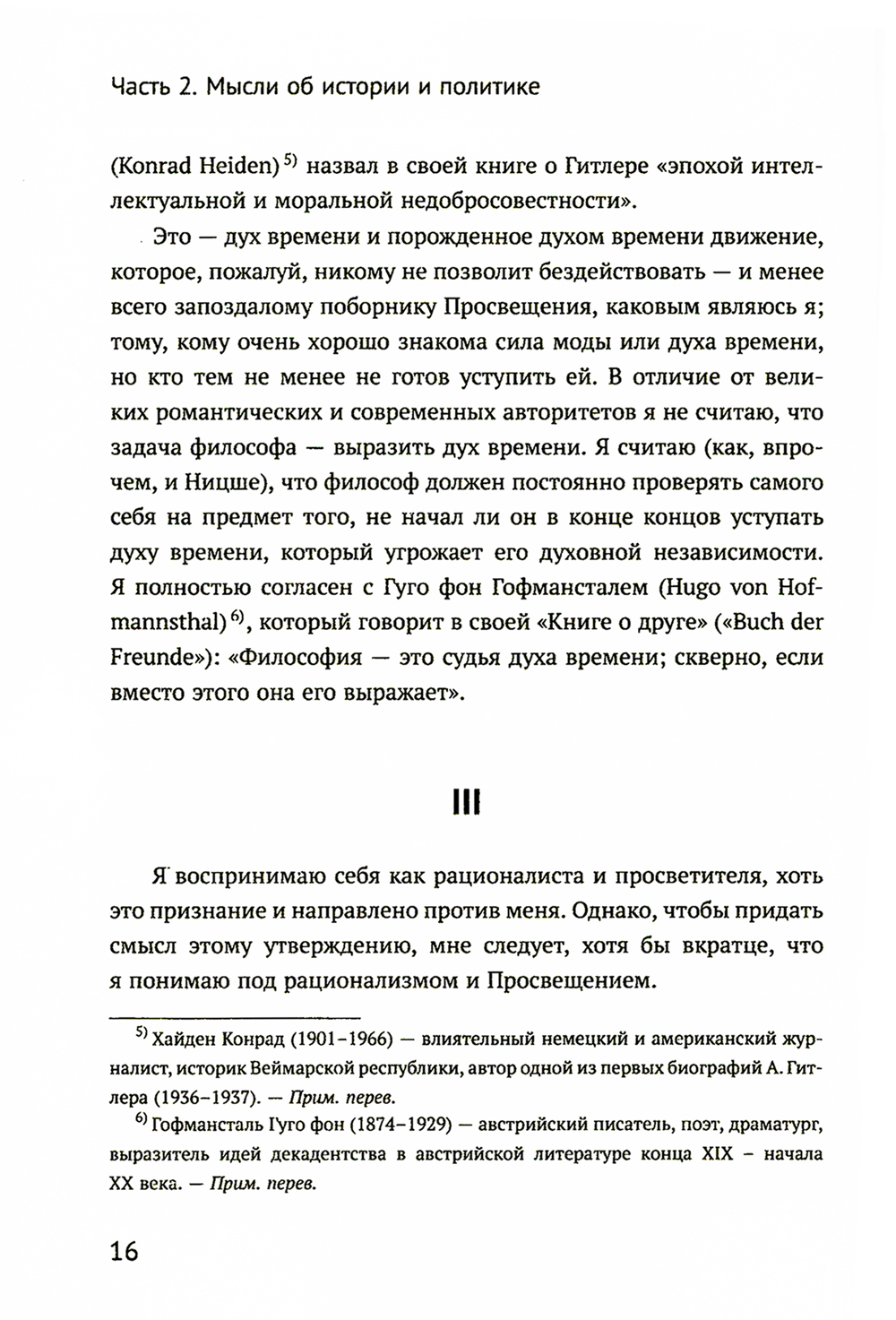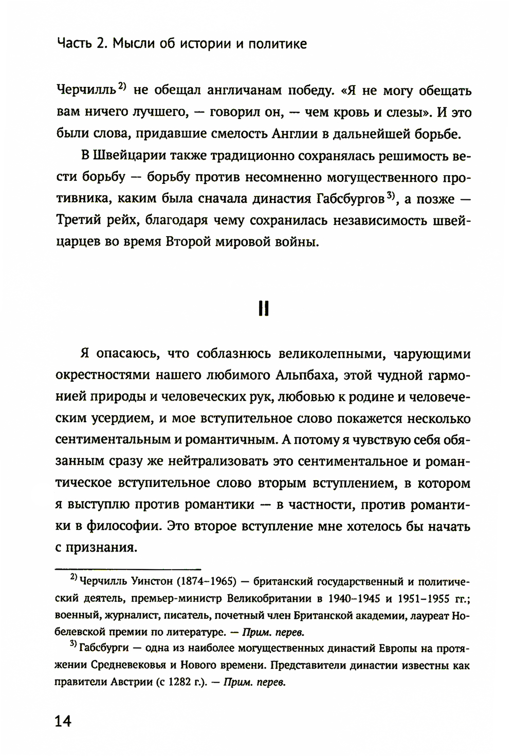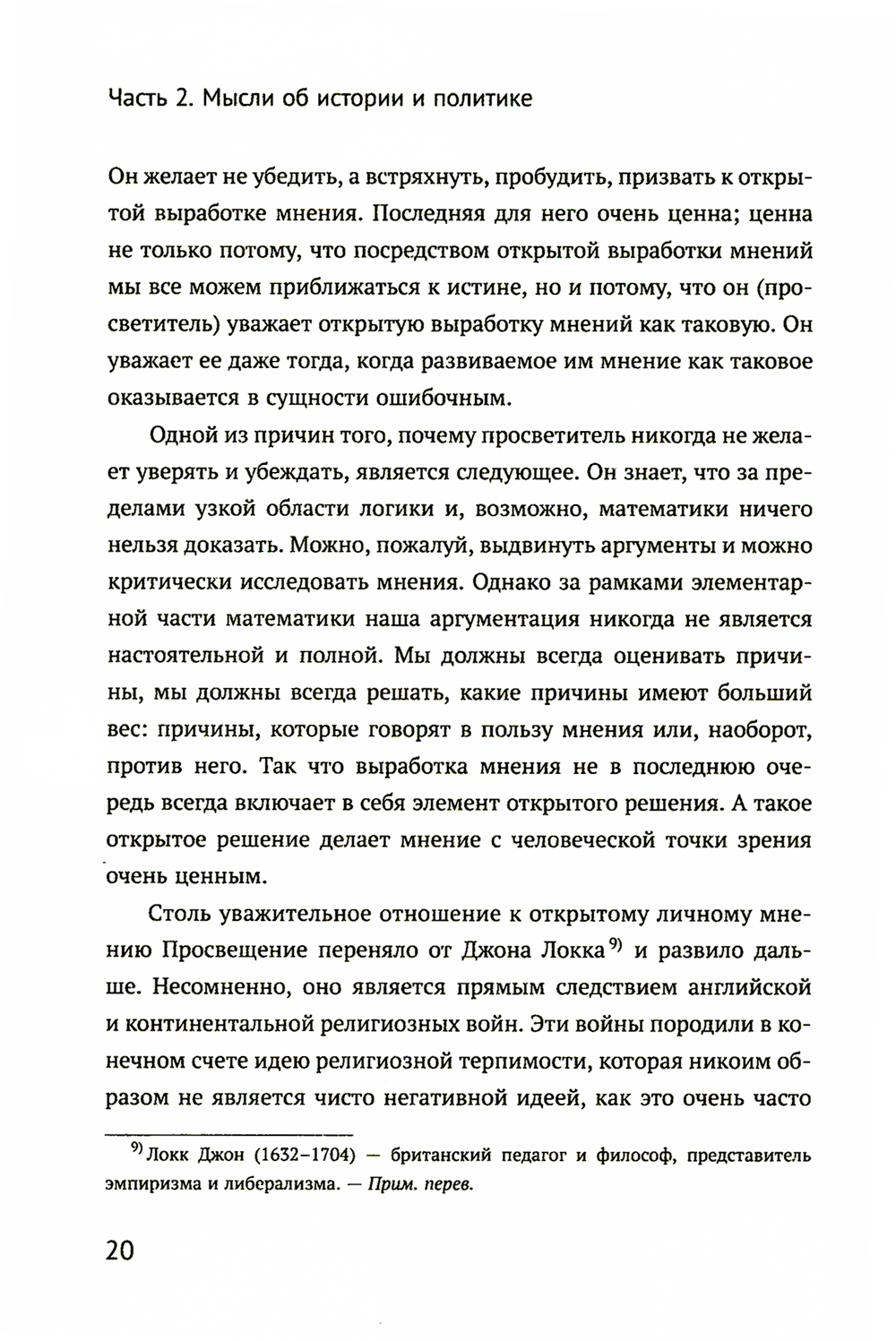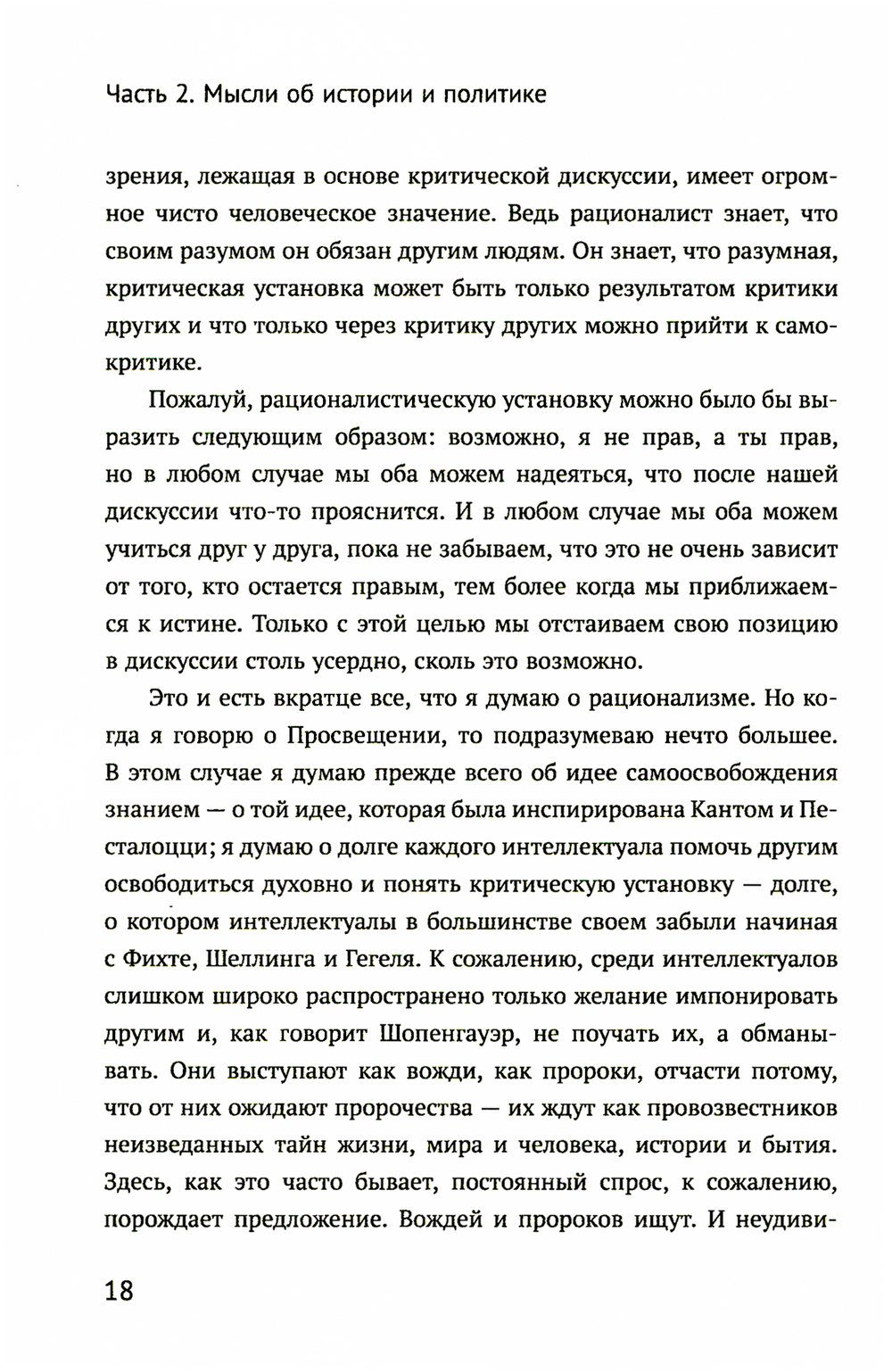 Настоящая книга включает ряд избранных работ влиятельнейшего мыслителя XX века К. Р. Поппера, посвященных ключевым философским проблемам, занимавшим его в разные годы жизни. Книга состоит из двух частей. Вторая часть, представленная в настоящем издании, содержит мысли об истории и политике: здесь ставятся вопросы о мире и возможности войны в наше время, свободе, ответственности и смысле истории, демократии и открытом обществе. Первая часть, выходящая одновременно со второй в нашем издательстве, сконцентрирована вокруг вопросов естествознания: в ней приводятся рассуждения автора о философии науки, теории познания, границах научного познания, проблемах взаимодействия биологии, химии и физики. Для всех собранных в издании работ характерны ясность мысли и простота изложения, всегда высоко ценившиеся автором. Подборка статей и подача материала определялись самим Поппером и его ближайшими коллегами в последний год его жизни. Большая часть текстов публикуется на русском языке впервые. Эта книга, таким образом - своего рода философское завещание автора и последнее недостающее звено в издании его работ на русском языке. Это лучший путеводитель по философской системе Поппера, составленный им самим из наиболее чистых, выстраданных за долгие годы жизни идей.| Издательство | ЛЕНАНД |