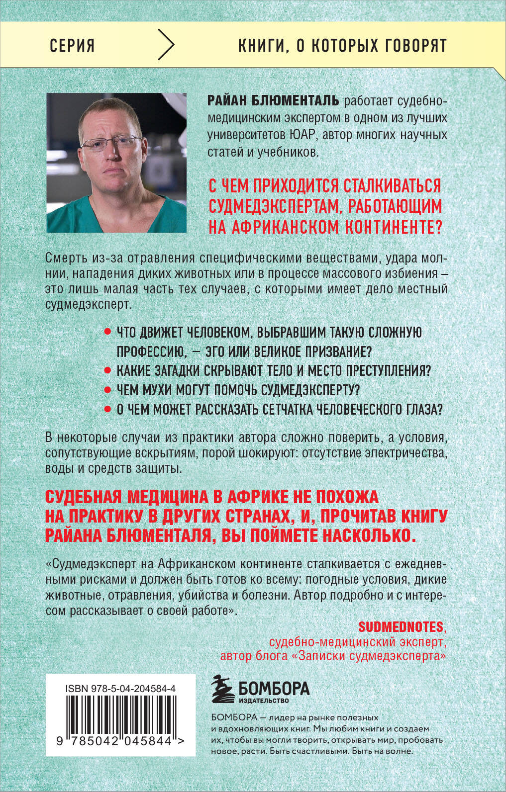 «Если вы хотите стать судмедэкспертом на африканском континенте, то должны быть готовы ко всему. Каждый день, отправляясь на работу, вы подвергаетесь риску: никогда не знаешь, что может скрываться внутри - или снаружи - мертвого тела», - замечает автор этой уникальной книги. Это личный рассказ судмедэксперта, практикующего в ЮАР, описание случаев из его практики и проблем, существующих в области местной судмедэкспертизы. Специалистам в этой части света порой приходится работать в совершенно диких условиях: например, без воды, электричества или средств индивидуальной защиты. Помимо большой аналитической работы, они часто имеют дело с настоящей опасностью: внутри тела может быть спрятана взрывчатка, работник может подвергнуться воздействию радиации или вредных веществ. Смерти, которые они исследуют, зачастую связаны с нетипичными причинами - нападением диких животных или ударом молнии. Райан Блюменталь рассказывает о случаях, характерных именно для африканского континента, и методах, которыми пользуются судмедэксперты для установления причины смерти. Видя изнанку профессии, он делится своим опытом и размышляет о том, что же руководит человеком, выбирающим этот непростой путь. «Судебная медицина в ЮАР отличается от отечественной, но имеет общие цели - поиск правосудия. Судмедэксперт на африканском континенте сталкивается с ежедневными рисками и должен быть готов ко всему: погодные условия, дикие животные, отравления, убийства и болезни. Автор подробно и с интересом рассказывает о своей работе. Книга будет интересна как профессионалам, так и людям, которые увлечены темами медицины и расследований». - Б.А., судебно-медицинский эксперт, автор блога «Записки судмедэксперта» SUDMEDNOTES| Издательство | ООО "Издательство "Эксмо" |