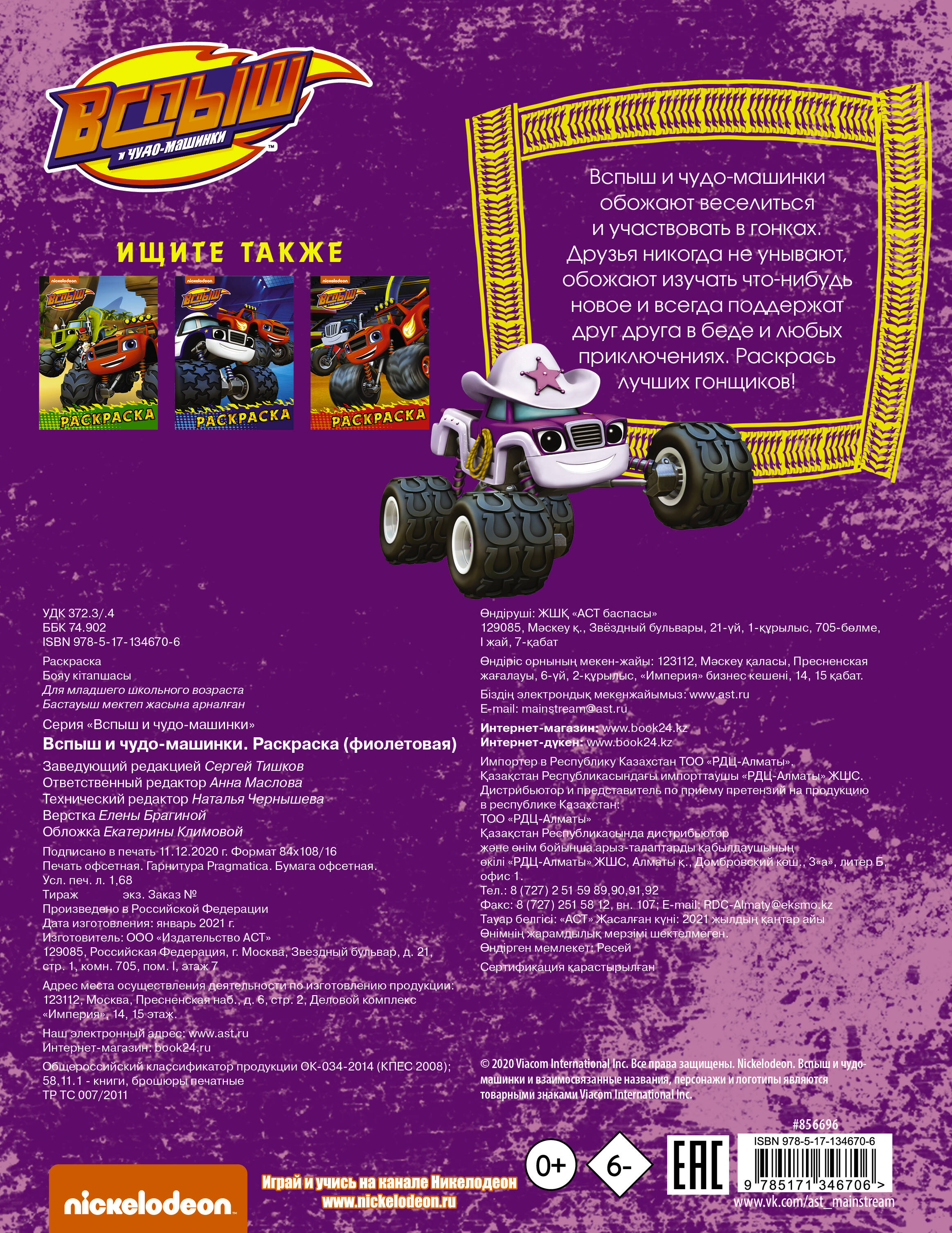 Аннотация: Вспыш и чудо-машинки. Раскраска (фиолетовая)