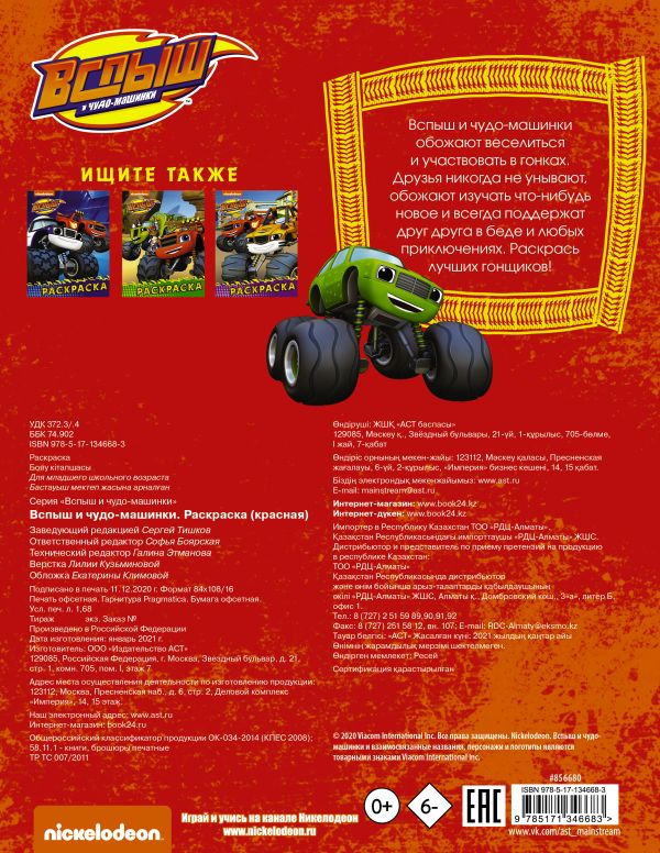 Аннотация: Вспыш и чудо-машинки. Раскраска (красная)