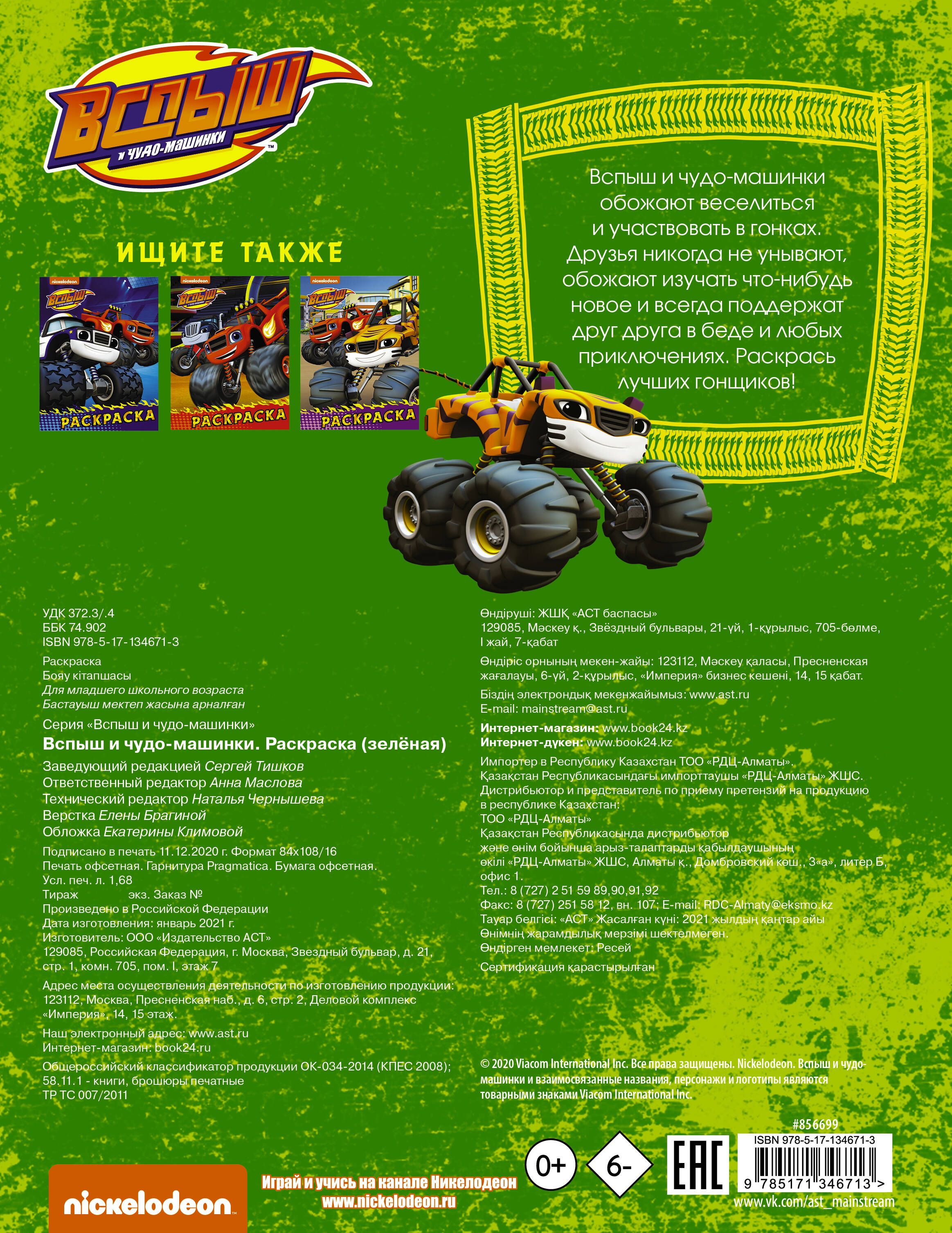 Аннотация: Вспыш и чудо-машинки. Раскраска (зелёная)