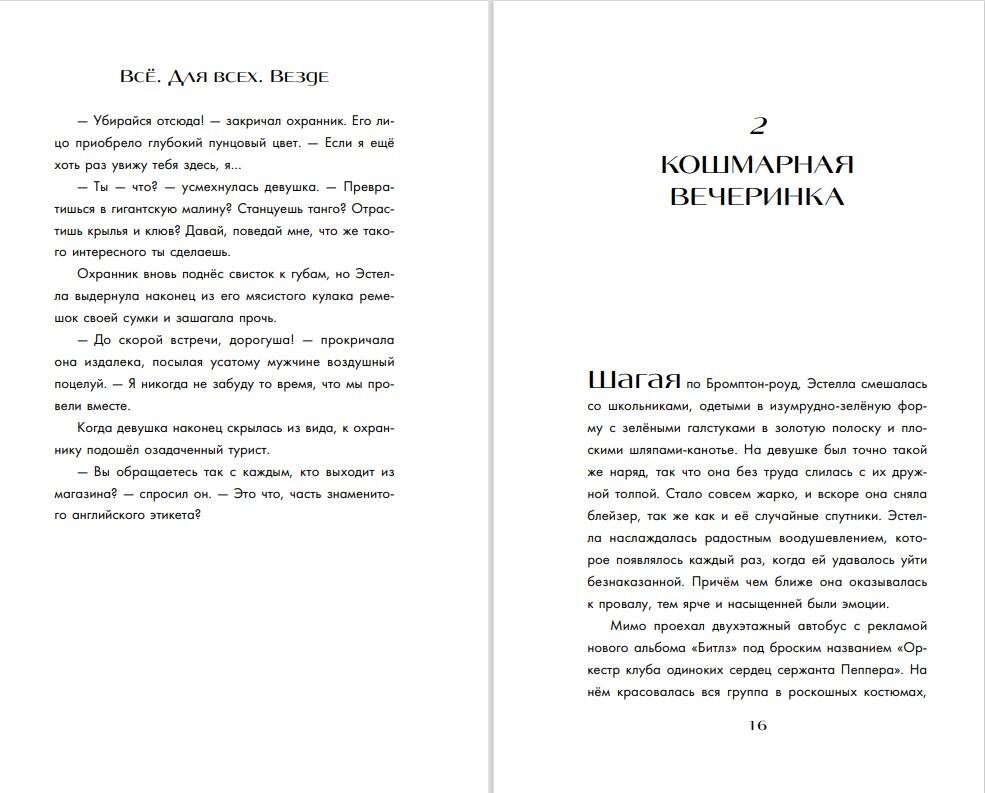 «Круэлла» - один из самых успешных фильмов компании Disney! Вас ждёт совершенно новая история о Круэлле, которую вы ещё не знаете, - это НЕ пересказ фильма! Юная, наивная, талантливая, амбициозная и капельку влюблённая - она покорит ваше сердце… снова! Она честно старалась быть хорошей… Юной Эстелле всего шестнадцать лет, но она уже мечтает о великом будущем. У неё невероятный талант - шить потрясающую одежду, но пока она тратит его на маскировочные костюмы для их с друзьями афер. Но в один прекрасный день всё меняется - Эстелла знакомится с самыми известными богачами и модниками Лондона, которые открывают для девушки двери в новый невероятный мир роскоши, стиля, гламурных вечеринок и рок-звёзд. Пусть придётся оставить старых друзей, зато в этом мире Эстеллу ждёт признание, слава модельера и даже, возможно, первая любовь. Главное, чтобы блеск Лондона не ослепил Эстеллу и не скрыл от неё истинную суть вещей и людей, с которыми она имеет дело. Ведь тогда на сцену придётся выйти Круэлле…| Издательство | ООО "Издательство "Эксмо" |