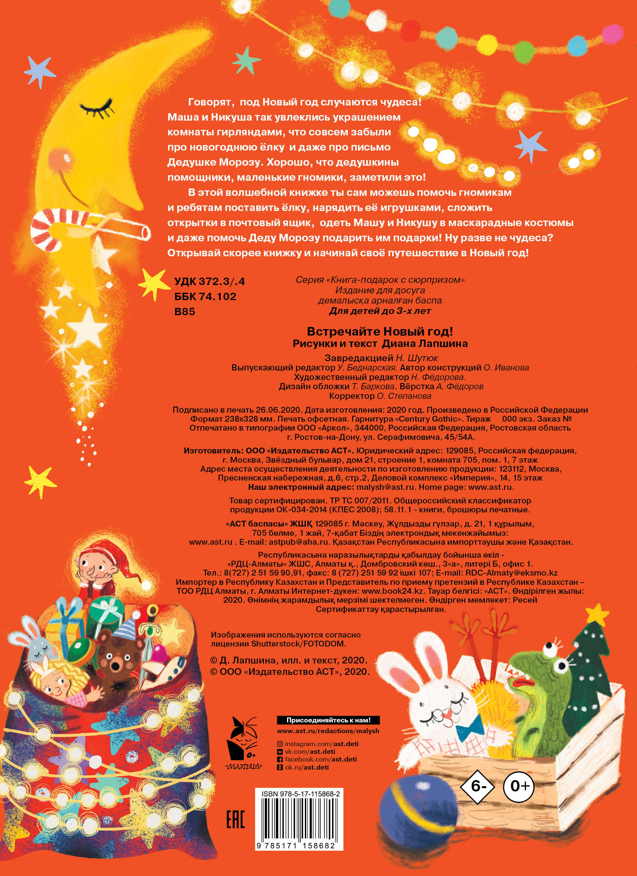 Книга-игра большого формата на плотном картоне с окошками и кармашками, в которые можно поставить елочку или украсить ее шариками-снежинками, положить письмо Деду Морозу в почтовый ящик. Книга выходит в красочных иллюстрациях известной российской художницы Дианы Лапшиной с настоящей новогодней историей с элементами игры.| Издательство | ИЗДАТЕЛЬСТВО "АСТ" |