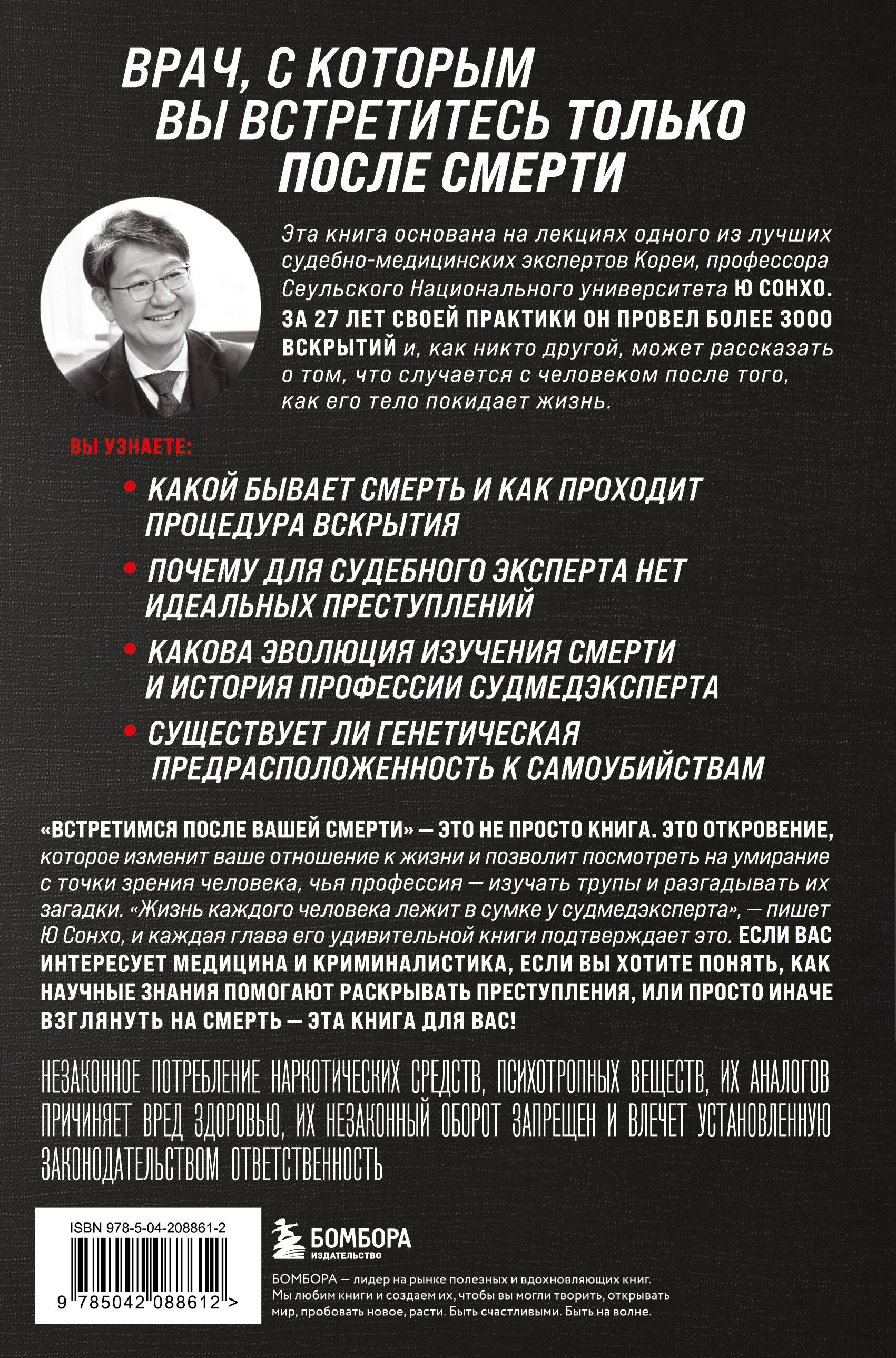 НЕЗАКОННОЕ ПОТРЕБЛЕНИЕ НАРКОТИЧЕСКИХ СРЕДСТВ, ПСИХОТРОПНЫХ ВЕЩЕСТВ, ИХ АНАЛОГОВ ПРИЧИНЯЕТ ВРЕД ЗДОРОВЬЮ, ИХ НЕЗАКОННЫЙ ОБОРОТ ЗАПРЕЩЕН И ВЛЕЧЕТ УСТАНОВЛЕННУЮ ЗАКОНОДАТЕЛЬСТВОМ ОТВЕТСТВЕННОСТЬ. «Жизнь каждого человека лежит в сумке у судмедэксперта» (с). - Ю Сонхо Представьте человека, который встречается с вами только после вашей смерти. Он разгадывает последние тайны человека, находит ответы на вопросы, которые уже некому задать. «Встретимся после вашей смерти» - это не просто книга. Это путешествие в мир, куда обычным людям вход закрыт. Ведущий судмедэксперт Кореи Ю Сонхо приоткрывает завесу тайны и рассказывает: ✔ Какой на самом деле бывает смерть - и что происходит с телом в руках судебно-медицинского эксперта. ✔ Почему не бывает идеальных убийств - и как наука находит преступников даже спустя годы. ✔ Как человечество училось понимать смерть - от древних времен до современности. ✔ Существует ли «ген самоубийцы» - и можно ли предсказать трагедию. Если вы интересуетесь медициной, криминалистикой или просто хотите взглянуть на жизнь под другим углом - эта книга для вас! «Я была научным редактором многих книг от судебно-медицинских экспертов, но с азиатским взглядом на эту профессию столкнулась впервые. Однозначно могу сказать, что ее стоит прочитать тем, кто боится смерти. Странным образом она успокаивает и дарит понимание: смерть - часть жизни, а не ее антоним». - Карина Рытова, врач судебно-медицинский эксперт, автор блога coroner_rytova| Издательство | ООО "Издательство "Эксмо" |