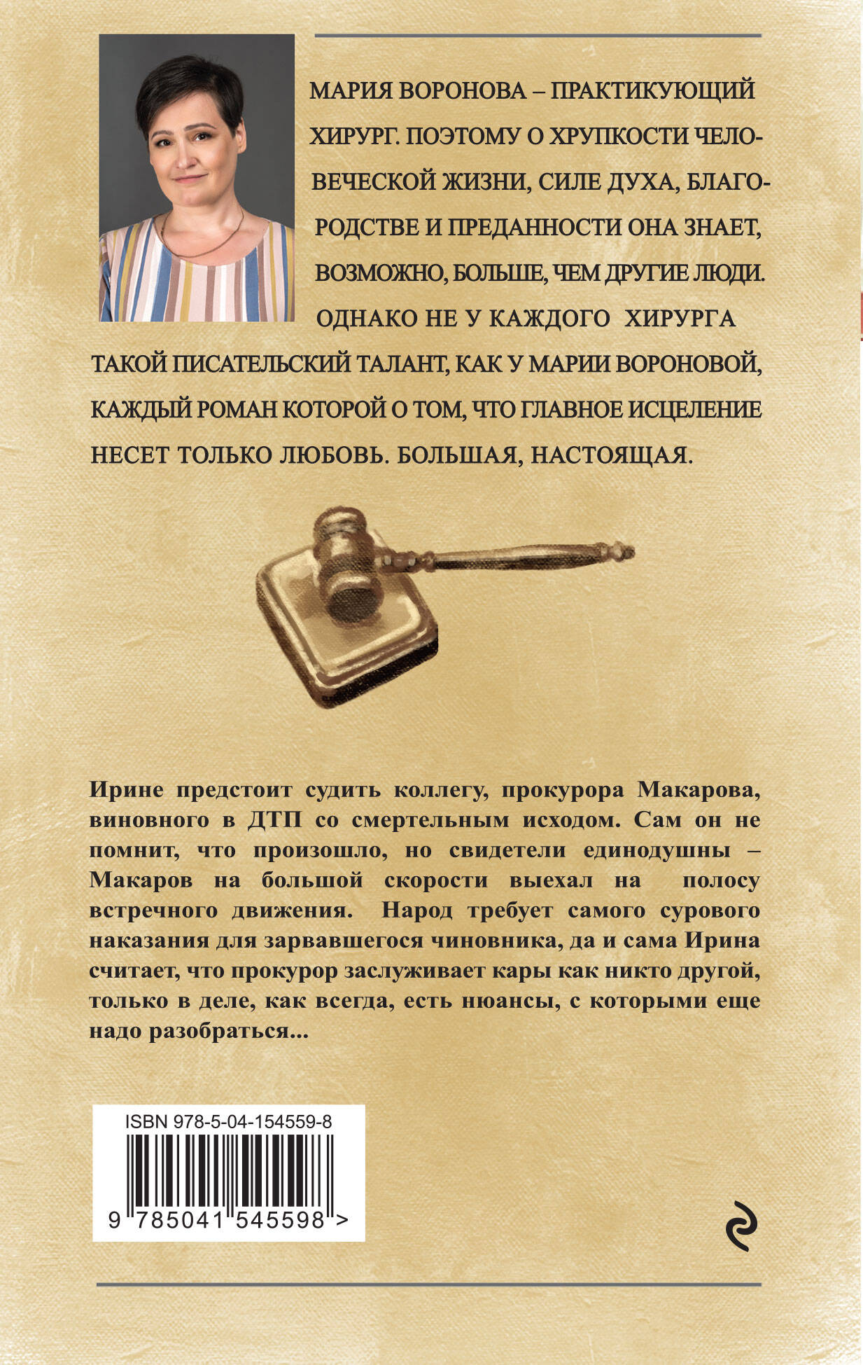 Мария Воронова - известный хирург, кандидат медицинских наук, автор операционных методик и… более десятка романов, которые широко обсуждаются в Сети. Ее герои - блестящие профессионалы медицины. Что они думают о больных? Как лечатся сами? И вообще, каково это - быть врачом в современной России? Честный ответ на эти вопросы - в книгах Марии Вороновой, наполненных тончайшими наблюдениями и юмором. Судье Ирине предстоит сложная работа - на сей раз на скамье подсудимых ее коллега, прокурор Макаров. Мужчину обвиняют в ДТП со смертельным исходом, но сам подсудимый не помнит, что произошло. Свидетели единодушны в своих обвинениях. Но все-таки что-то в этом деле не так...| Издательство | ООО "Издательство "Эксмо" |