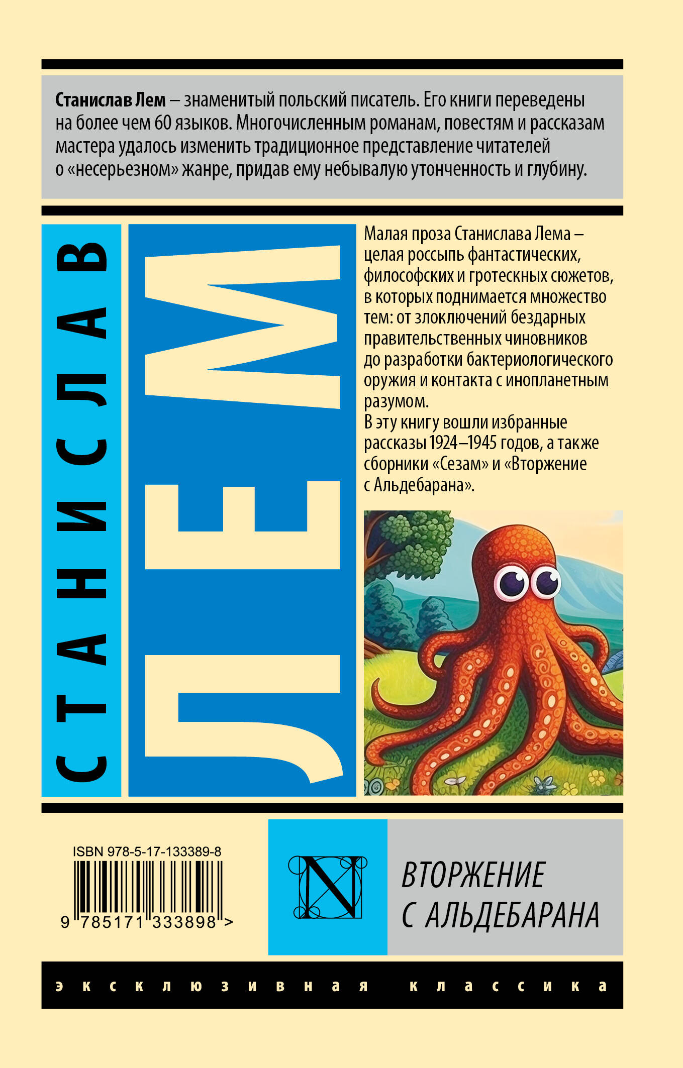 Малая проза Станислава Лема - целая россыпь фантастических, философских и гротескных сюжетов, в которых поднимается множество тем: от злоключений бездарных правительственных чиновников до разработки бактериологического оружия и контакта с инопланетным разумом. В эту книгу вошли избранные рассказы 1924 - 1945 годов, а также сборники "Сезам" и "Вторжение с Альдебарана".| Издательство | Издательство "АСТ" |