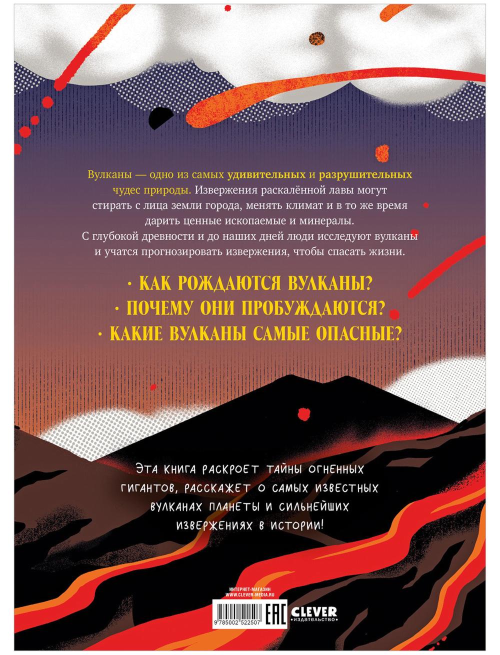 Детская энциклопедия расскажет о самых известных вулканах планеты и о сильнейших извержениях в истории! Энциклопедия для детей «Вулканы. Тайны огненных гигантов» ответит на вопросы: как рождаются вулканы, почему они пробуждаются, какие вулканы самые опасные? На страницах книги для детей, Clever книги, вы прочитаете о том, что вулканы - одно из самых удивительных и разрушительных чудес природы. Извержения раскаленной лавы могут стирать с лица земли города и в то же время дарить ценные ископаемые и минералы. С глубокой древности и до наших дней люди исследуют вулканы и учатся прогнозировать извержения, чтобы спасать жизни. И об этом расскажут главы книги Clever. Энциклопедия поможет развивать интерес детей к науке, доступным, понятным языком расскажет о сложных научных исследованиях. Книга большого формата с красочными иллюстрациями понравится детям, а также родителям, которые выбирают развивающие детские книги, познавательные книги для детей 8-9-10 лет, книги детские о науке, детские книжки о природных явлениях и о загадках нашей планеты.| Издательство | Клевер-Медиа-Групп |