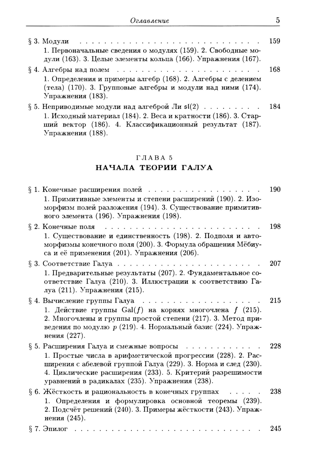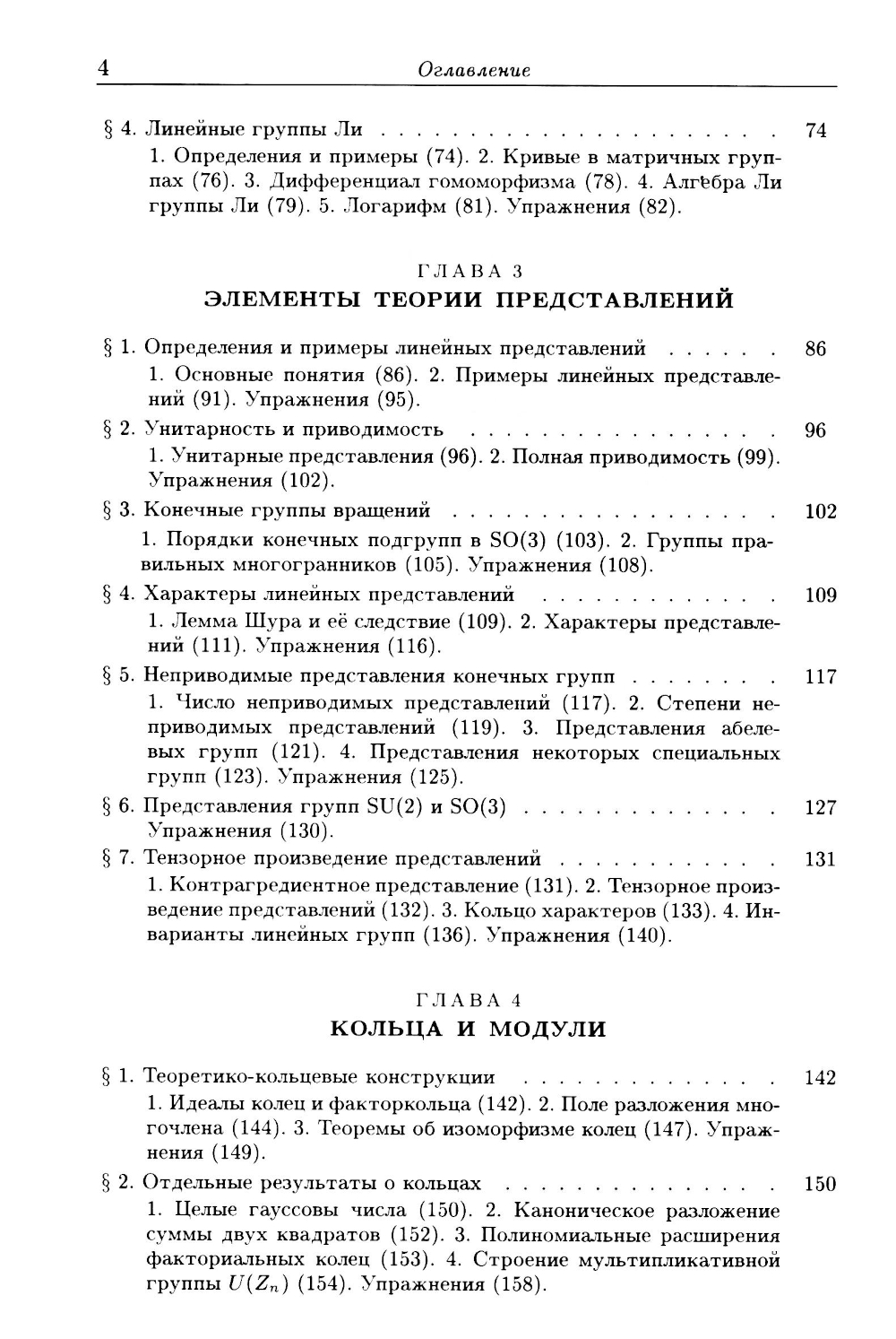 Алгебраические структуры, известные из первых двух частей учебника (группы, кольца, модули), изучаются на несколько более высоком уровне. Идеи и результаты теории представлений, подкреплённые многочисленными примерами, придают всему изложению общематематическое звучание. Особое место занимают конечно порождённые абелевы группы, теоремы Силова, представления и характеры конечных групп, алгебры над классическими полями. Имеются теоретико-числовые приложения. В заключительной главе изложены основы теории Галуа. Каждый параграф снабжён упражнениями. Ответы и наброски решений собраны в отдельном разделе.| Издательство | МЦНМО |