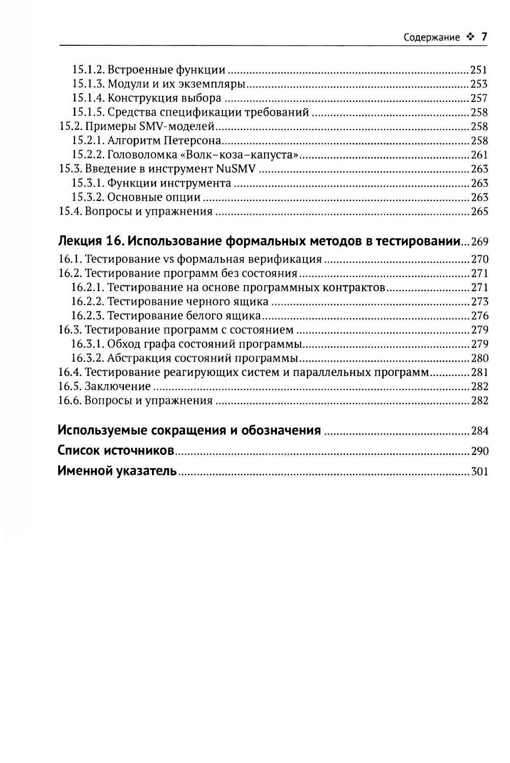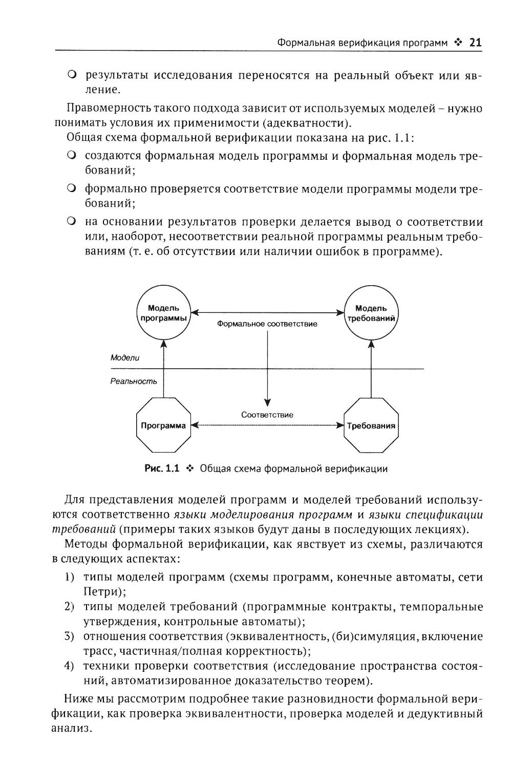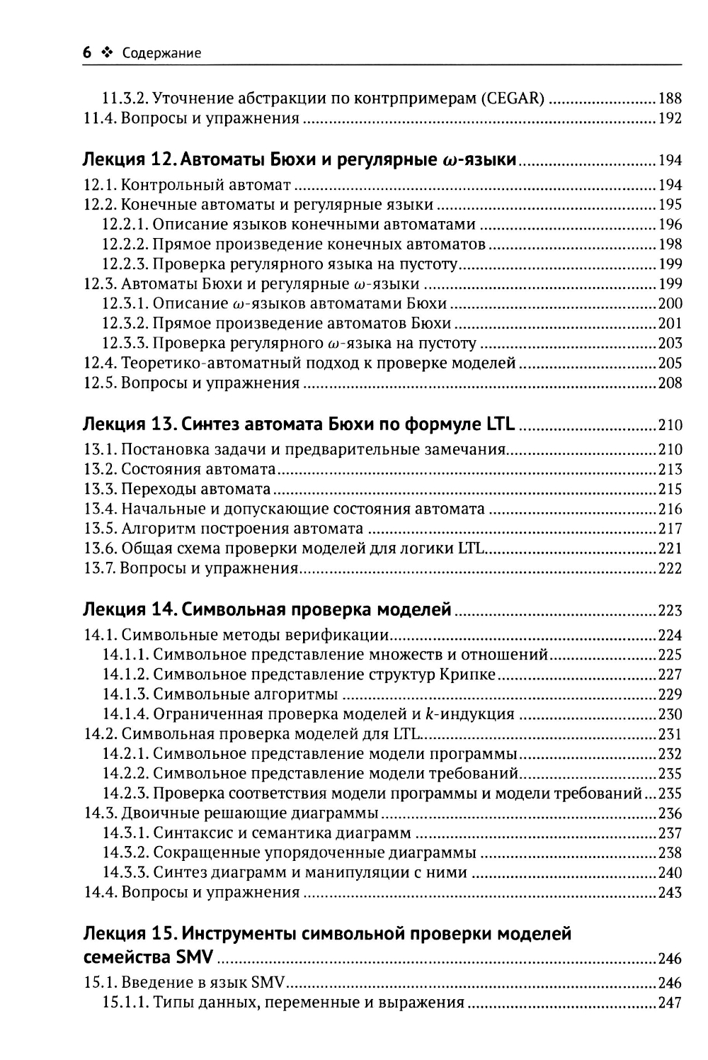 Книга основана на курсах лекций по формальным методам верификации программ, читаемых автором на кафедрах системного программирования МГУ, МФТИ и ВШЭ. Список тем включает: методы формализации семантики языков программирования (операционная и аксиоматическая семантика), методы формальной спецификации требований (программные контракты и темпоральная логика линейного времени), методы доказательства корректности программ (метод индуктивных утверждений и метод фундированных множеств) и методы проверки моделей (теоретико-автоматный подход в явной и символической формах); затрагиваются вопросы абстрактной интерпретации, разрешения ограничений, применения формальных методов в тестировании; даются сведения об инструментах Frama-C/AstraVer, Spin и SMV. Каждая глава сопровождается примерами и упражнениями. Книга предназначена для студентов и аспирантов программистских специальностей, а также преподавателей и исследователей в области информатики и программной инженерии.