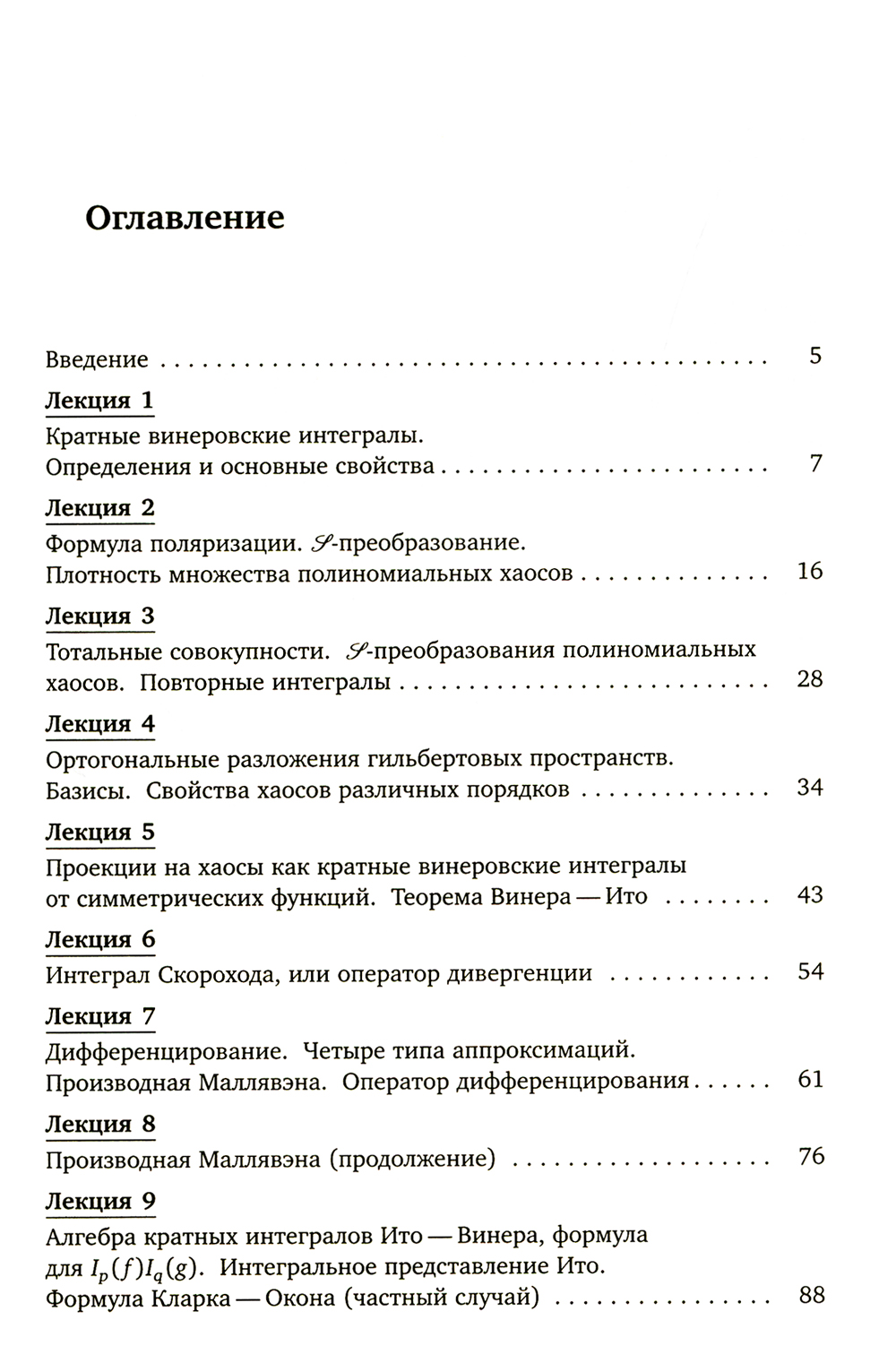 Первая часть книги посвящена необходимым математическим сведениям для доказательства теоремы Винера-Ито. Вторая часть книги посвящена доказательству простой и обобщённой теоремы Кларка-Окона, которая находит применение в финансовой математике. Изложен вариант конечномерной теории Маллявэна, позволяющий исследовать гладкость нелинейных функционалов, заданных на пространстве с гауссовой мерой. Все основные объекты теории определяются через разложения по полиномиальным хаосам. Для каждой из рассмотренных тем приведены задачи и даны их решения.