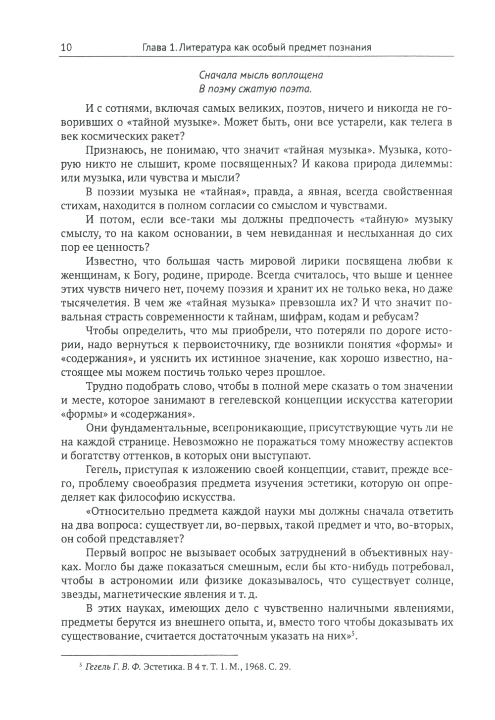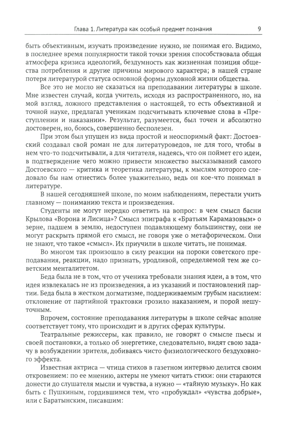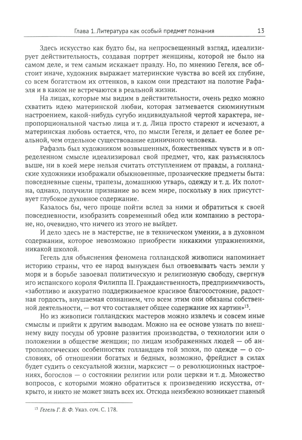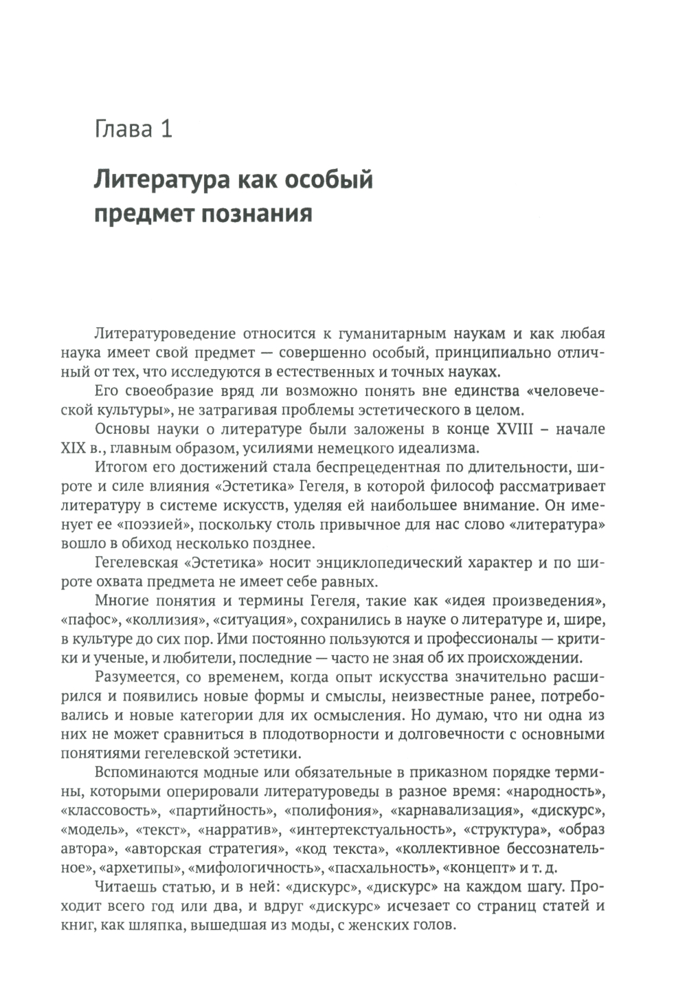 В учебнике ставится и обсуждается проблема своеобразия науки о литературе и ее отличие от естественных наук. В нем излагается своего рода «история вопроса»: от «новой науки» Вико, взглядов Канта и Гегеля, концепции гуманитарного познания Дильтея - до теорий XX века - герменевтики Гадамера и взглядов формалистов, структуралистов и постмодернистов. В работе прослеживается история глобального противоречия двух направлений науки о литературе: «гуманитарного» («традиционного») и «сциентистского». Дается анализ основных категорий противостоящих концепций науки: «формы», «содержания», «идеи», «идеала», с одной стороны; и «дискурса», «текста», «письма» - с другой. В отличие от общепринятой в наше время академической, нейтральной манеры изложения, не дающей оценки противоборствующим теориям, автор становится на сторону одной из теорий - «традиционного» литературоведения. Такие учебники нужны не меньше тех, в которых авторы воздерживаются от оценок анализируемых ими концепций, и помогают студентам занять собственную продуманную позицию и избежать равнодушной эклектики. Для студентов вузов, обучающихся по гуманитарным направлениям.