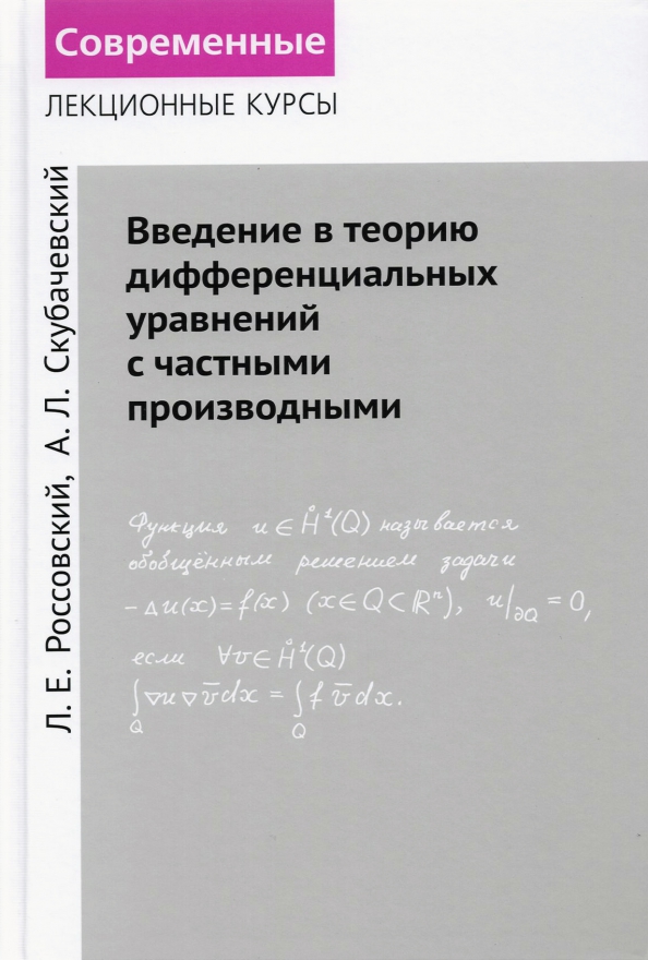 Настоящий учебник по уравнениям с частными производными имеет небольшой объём и предназначен для первого знакомства с предметом. Его отличает сочетание современного языка и строгости с доступностью и единым подходом к изложению материала, основанным на использовании пространств Соболева и понятии обобщенного решения. Книга может стать незаменимым помощником третьекурсникам и основным учебником по уравнениям с частными производными для студентов, обучающихся по направлениям «Математика» и «Прикладная математика и информатика».