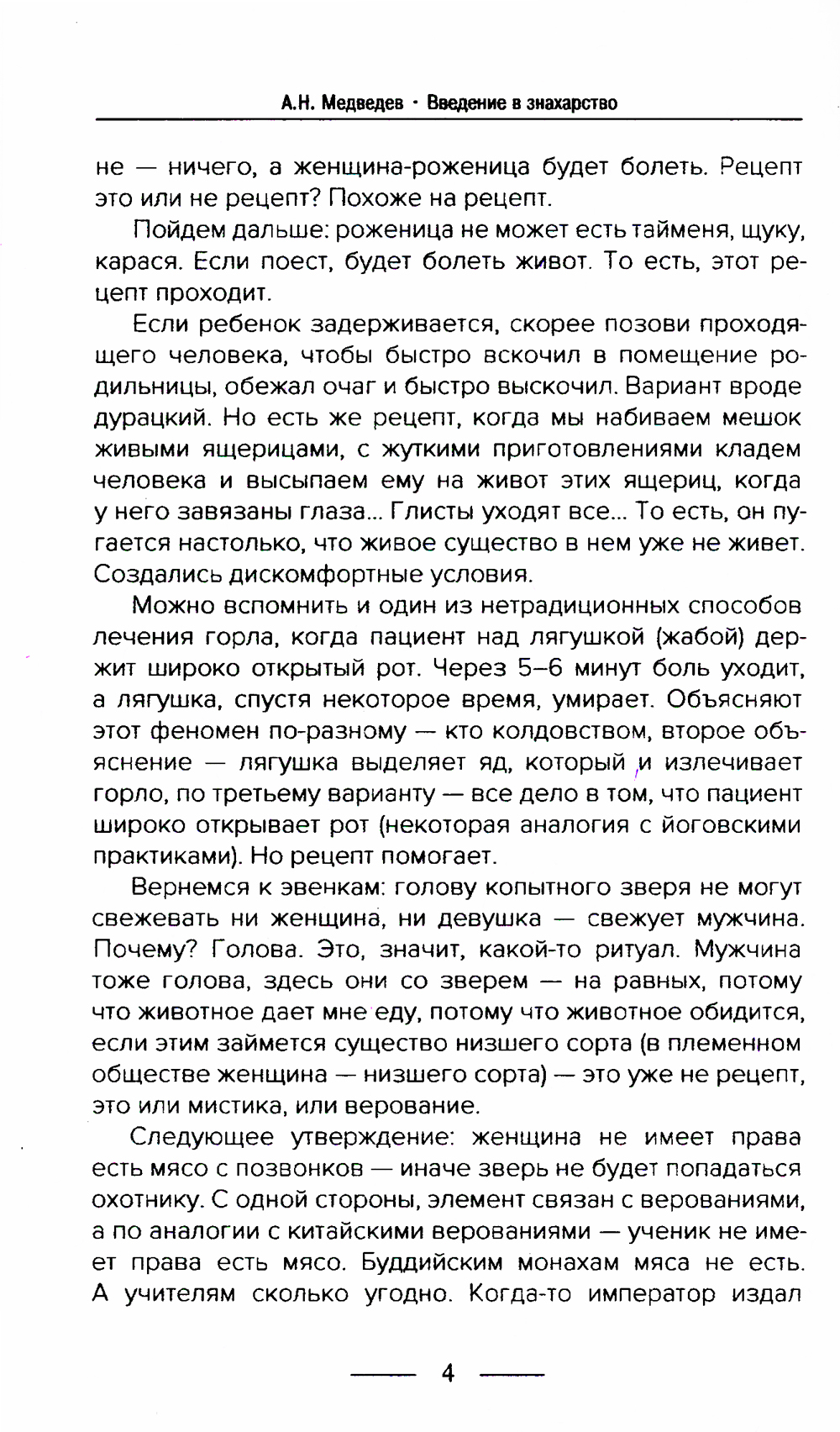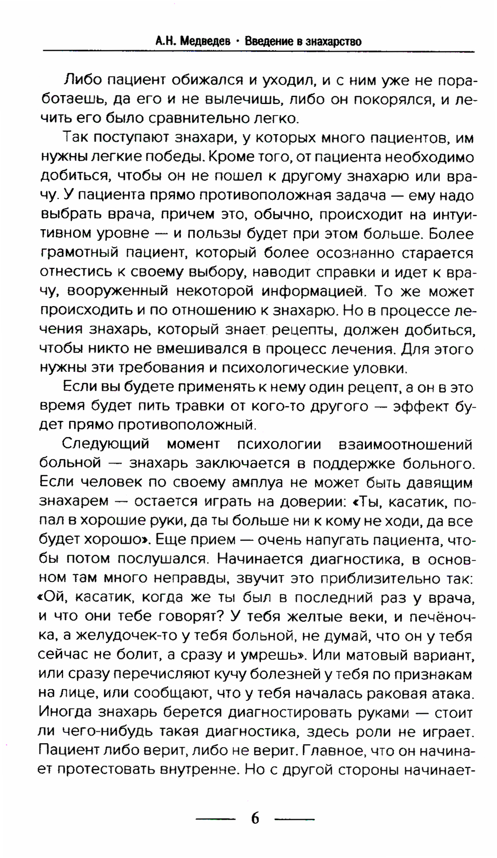 В книге содержатся материалы лекций, прочитанных известным российским писателем, психологом и специалистом по боевым искусствам Александром Николаевичем Медведевым. Эти лекции посвящены знахарству и народной медицине. У всех народов имеются свои традиционные методы лечения, которые веками скрупулезно собирались и бережно хранились в памяти поколений, и со временем записывались. Причём сохранялись те рецепты, которые давали положительные результаты, а те, которые оказывались на практике бесполезными или неэффективными, отбрасывались. Однако в XX веке, в связи с бурным развитием фармакологии и диагностики, а также в связи с широким внедрением физиотерапии интерес к традиционным методам лечения резко снизился и многие из них были преданы забвению. И только в последние десятилетия народная медицина снова оказалась в фокусе внимания. Данная книга знакомит читателя с секретами исцеления организма человека, которые представляют коллективный опыт многих поколений целителей - отечественных и зарубежных. В настоящее издание включены знахарские рецепты, которые помогут вам излечиться от разнообразных заболеваний и недугов.| Издательство | Амрита-Русь |