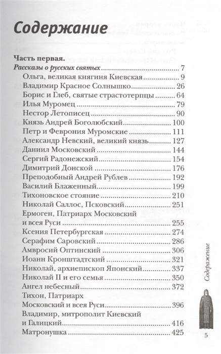 Читая эти рассказы о святых, мы невольно прикасаемся и к русской истории и понимаем, что святые живы, они рядом с нами, они наши современники и наши хранители: равноапостольная княгиня Ольга, блаженная Ксения Петербургская, праведный Иоанн Кронштадтский, патриарх Тихона (Белавин) и многие другие.