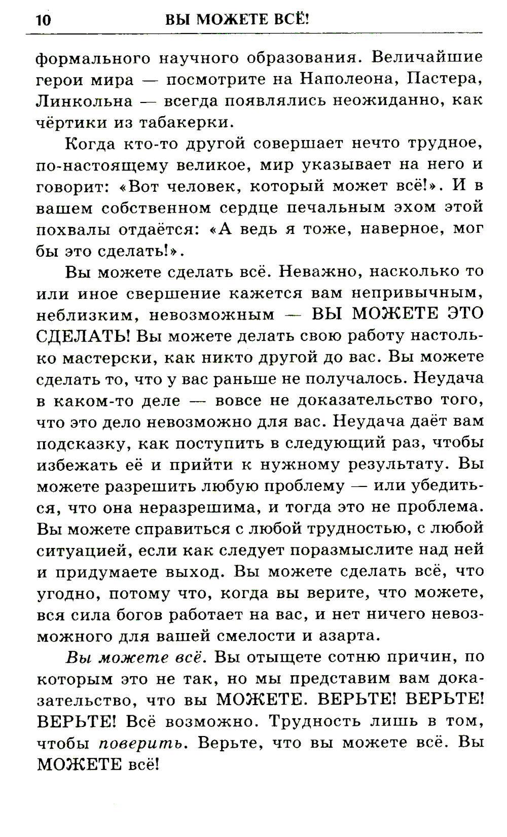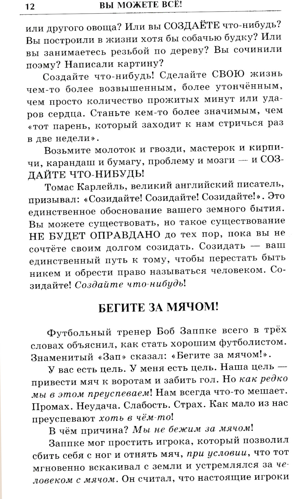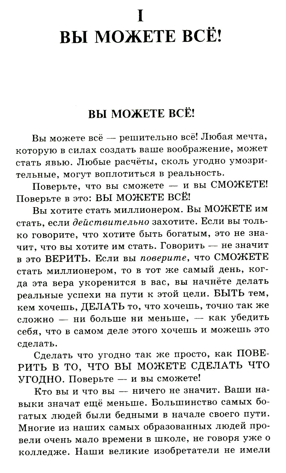 Вы можете всё - решительно всё! Любая мечта, которую в силах создать ваше воображение, может стать явью. Любые расчёты могут воплотиться в реальность. Почти всё полностью зависит от вас. Вы хотите стать миллионером? Вы можете им стать, если действительно захотите. Кто вы и что вы - ничего не значит. Ваши навыки значат ещё меньше. Большинство самых богатых людей были бедными в начале своего пути. Вы можете всё. Если человек может это сделать - любой человек может это сделать! Станьте таким человеком! Как это сделать - об этом расскажет эта книга Дж. Т. Мангана, знаменитого американского писателя, автора бестселлеров «Секрет лёгкой жизни» и «Умение продвигать себя».| Издательство | Крылов |