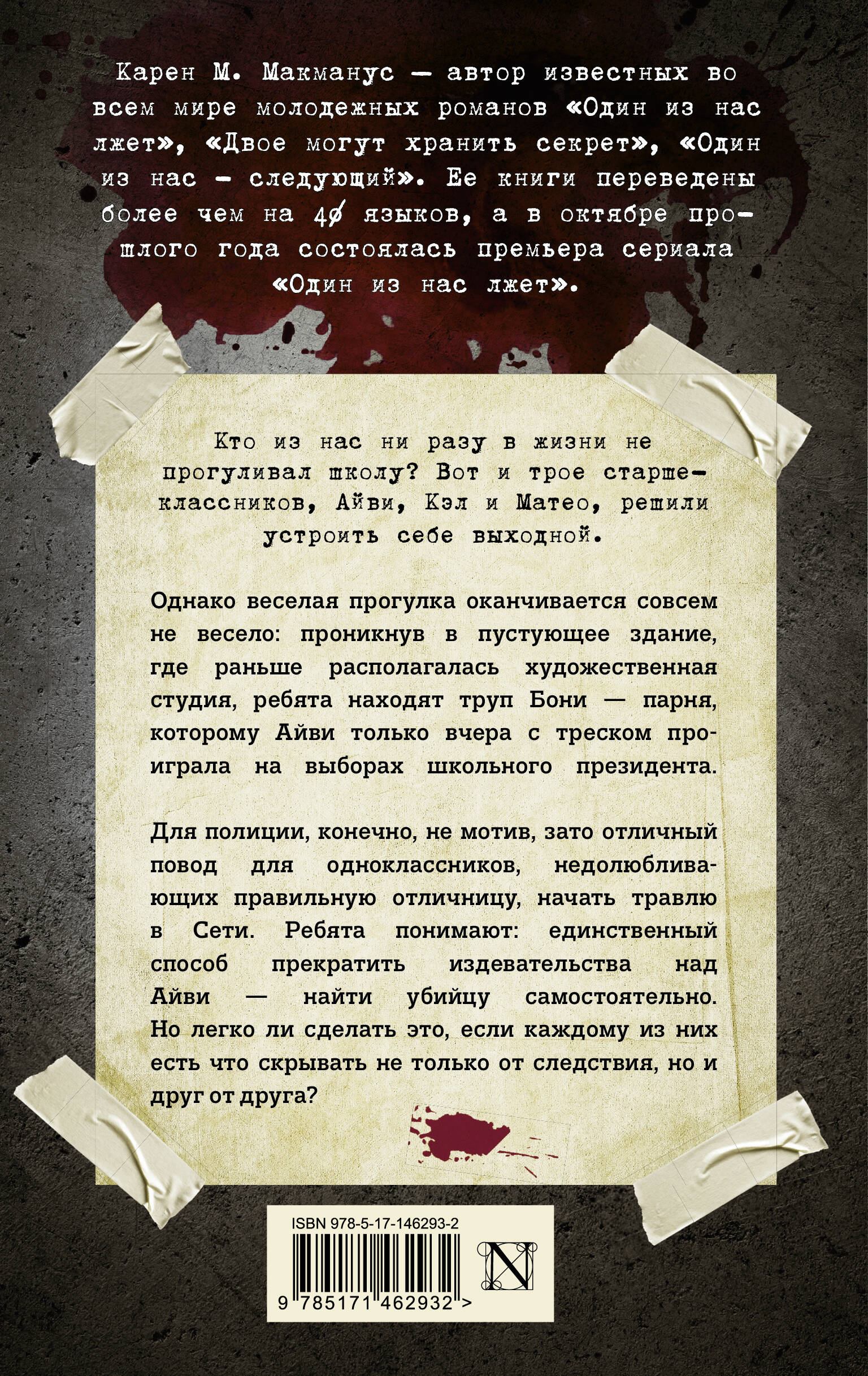 Новый захватывающий роман от автора культового бестселлера «Один из нас лжет» - одного из самых популярных молодёжных триллеров современности. Бестселлер New York Times и USA Today. Произведения Карен Макманус переведены на 40 языков, а суммарный тираж её книг превышает 4 000 000 экземпляров. В 2021 году по «Один из нас лжет» был снят сериал.