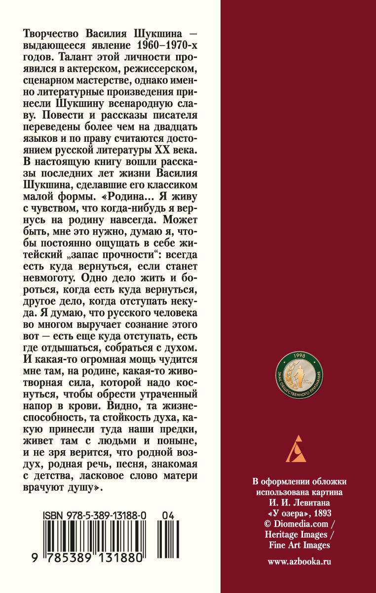 Творчество Василия Шукшина (1929-1974) - выдающееся явление 1960-1970-х годов. Талант этой личности проявился в актерском, режиссерском, сценарном мастерстве, однако именно литературные произведения принесли Шукшину всенародную славу. Повести и рассказы писателя переведены более чем на двадцать языков и по праву считаются достоянием русской литературы ХХ века. В настоящую книгу вошли рассказы последних лет жизни Василия Шукшина, сделавшие его классиком малой формы.