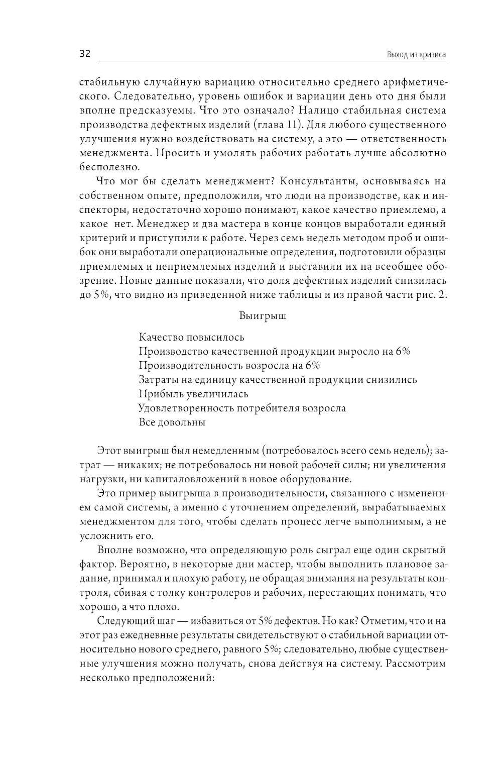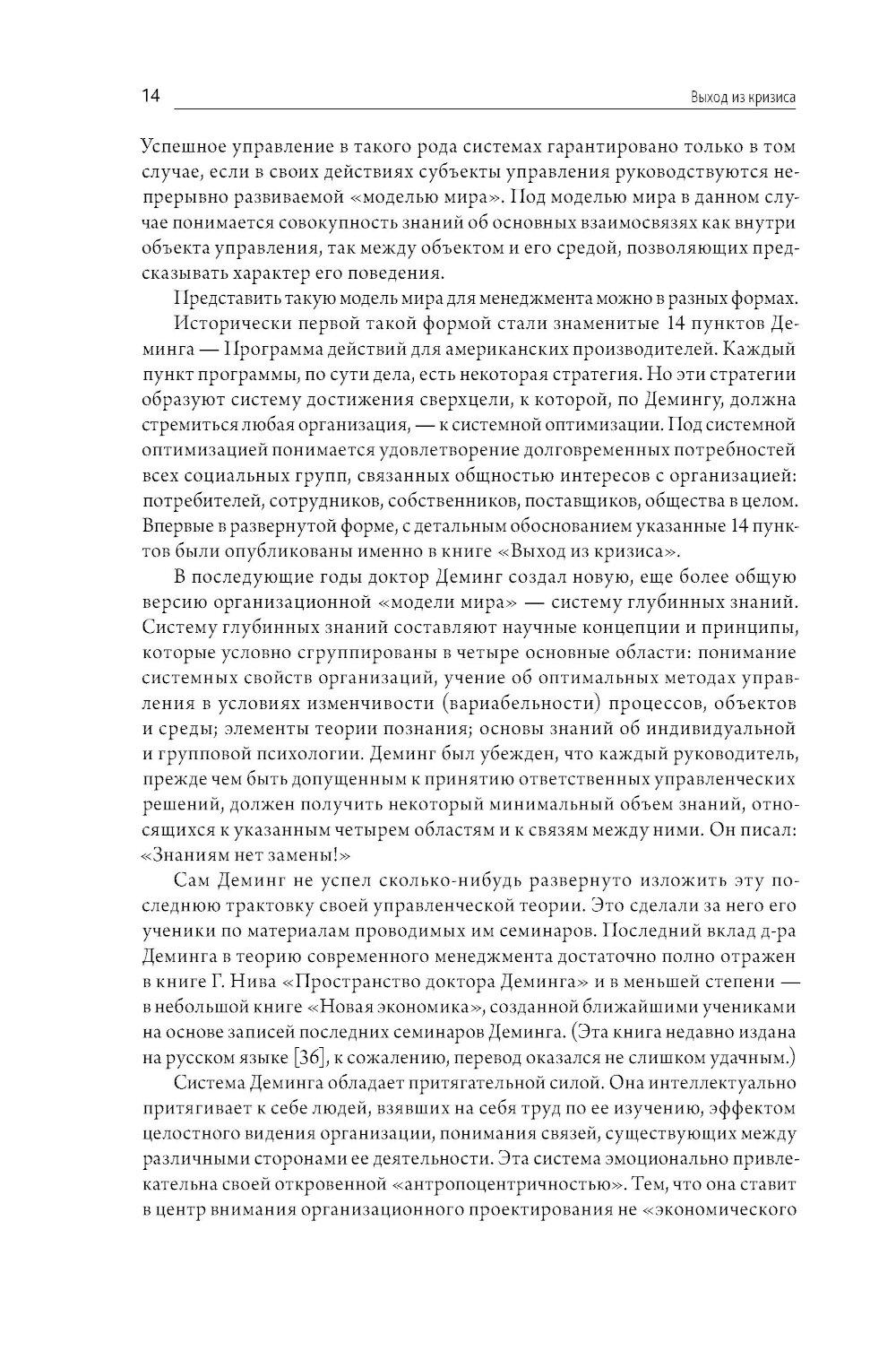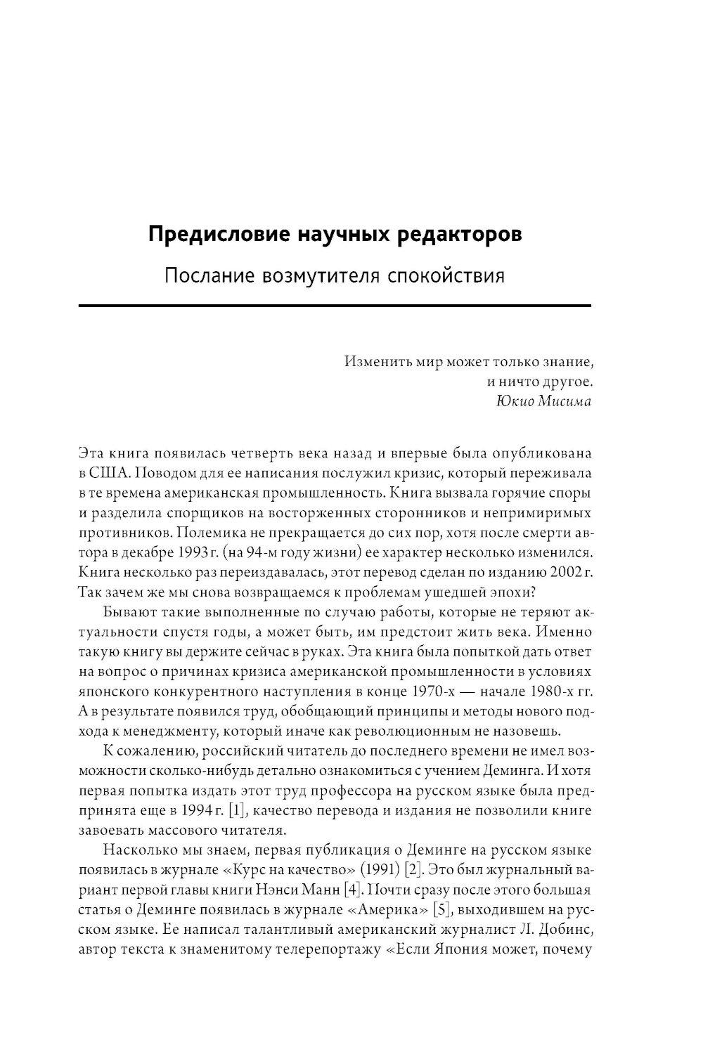 Книга бросает интеллектуальный и нравственный вызов стереотипам традиционного менеджмента. Революционная теория, изложенная автором издания, предлагает философию, методы и управленческие технологии, необходимые для построения устойчивого, эффективного бизнеса, обеспечивающего баланс интересов всех заинтересованных сторон: потребителей, сотрудников, собственников, поставщиков, общества в целом. Эта книга появилась четверть века назад и впервые была опубликована в США. Поводом для ее написания послужил кризис, который переживала в те времена американская промышленность. Книга вызвала горячую полемику, которая не прекращается до сих пор.