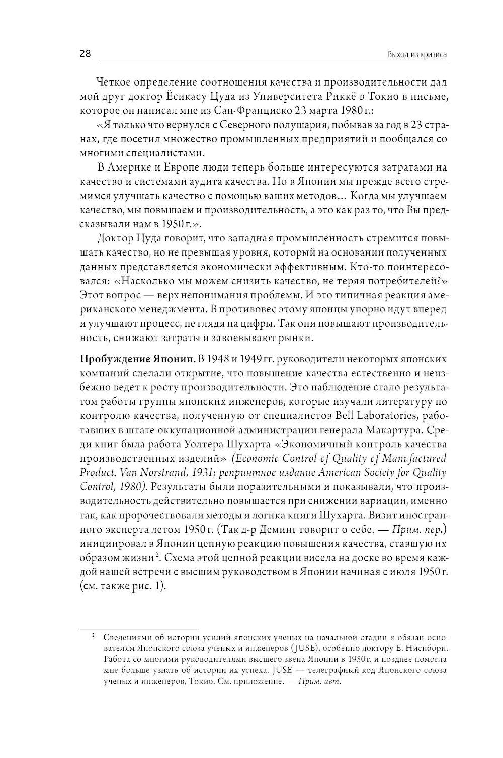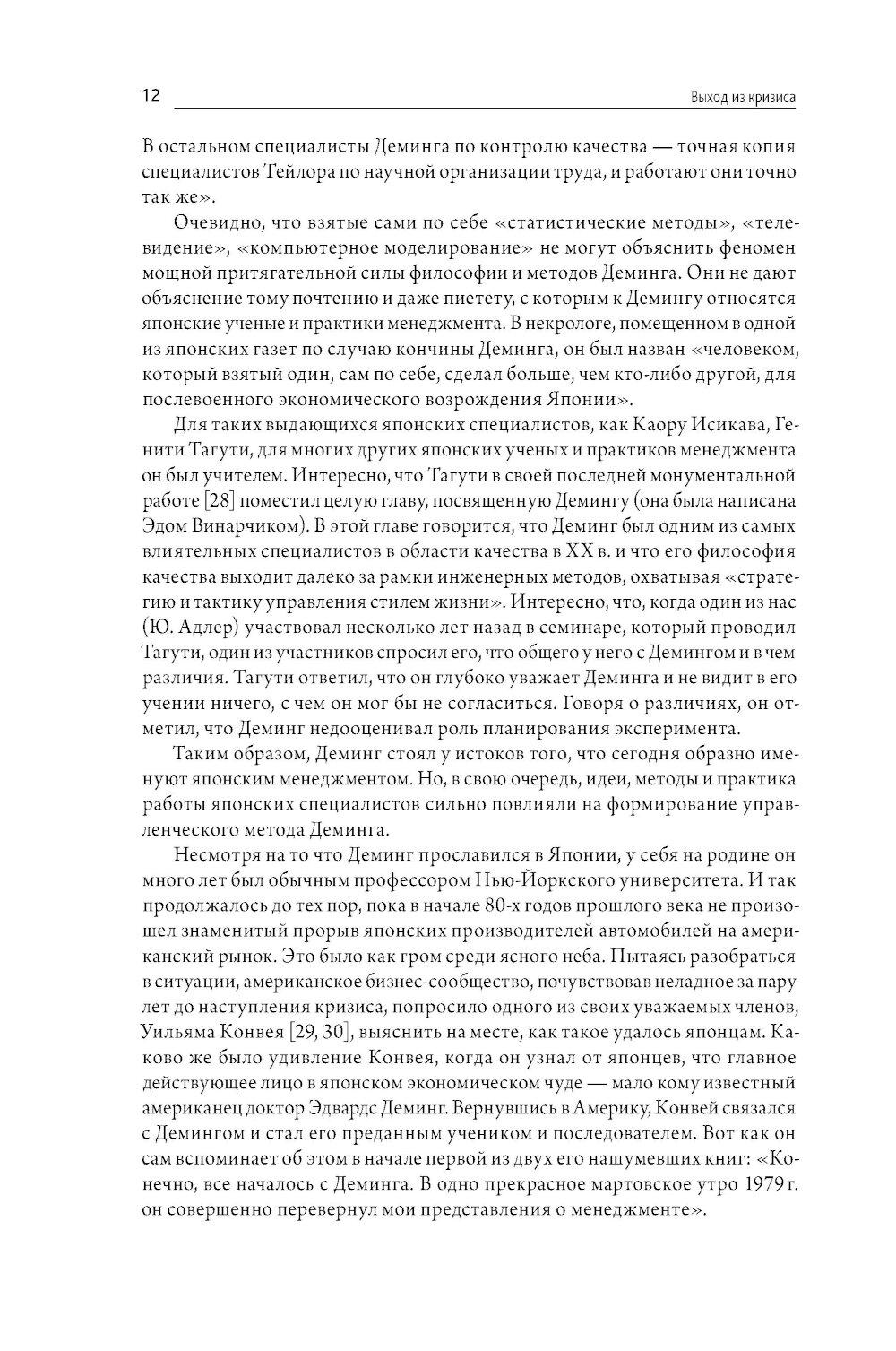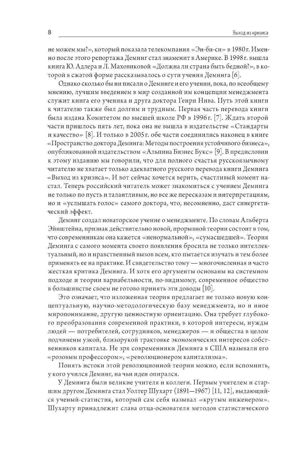 Книга бросает интеллектуальный и нравственный вызов стереотипам традиционного менеджмента. Революционная теория, изложенная автором издания, предлагает философию, методы и управленческие технологии, необходимые для построения устойчивого, эффективного бизнеса, обеспечивающего баланс интересов всех заинтересованных сторон: потребителей, сотрудников, собственников, поставщиков, общества в целом. Эта книга появилась четверть века назад и впервые была опубликована в США. Поводом для ее написания послужил кризис, который переживала в те времена американская промышленность. Книга вызвала горячую полемику, которая не прекращается до сих пор.