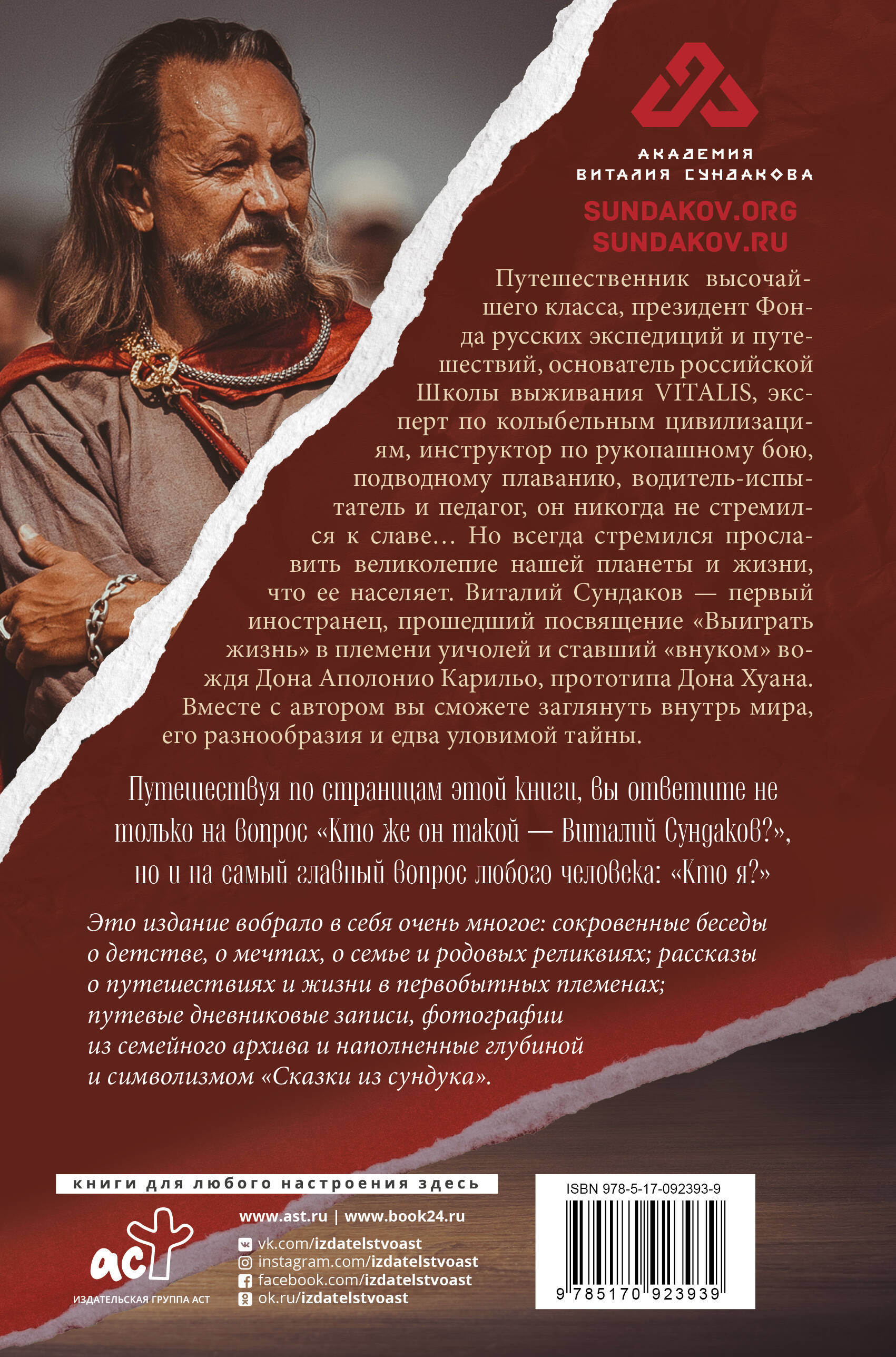 Путешественник высочайшего класса, президент Фонда русских экспедиций и путешествий, основатель российской Школы выживания VITALIS, эксперт по колыбельным цивилизациям, инструктор по рукопашному бою, подводному плаванию, водитель-испытатель и педагог, он никогда не стремился к славе… Но всегда стремился прославить великолепие нашей планеты Земля и жизни, что ее населяет. Виталий Сундаков - первый иностранец, прошедший посвящение "Выиграть жизнь" в племени уичолей и ставший "внуком" вождя Дона Аполонио Карильо, прототипа Дона Хуана. Вместе с автором вы сможете заглянуть внутрь мира, его разнообразия и едва уловимой тайны. Путешествуя по страницам этой книги, вы ответите не только на вопрос "Кто же он такой, Виталий Сундаков?", но и на самый главный вопрос любого человека: "Кто я?" Это издание вобрало в себя очень многое: сокровенные беседы с Виталием Сундаковым: о детстве, о мечтах, о семье и родовых реликвиях; рассказы автора о путешествиях и жизни в первобытных племенах; его путевые дневниковые записи, фотографии из семейного архива и наполненные глубиной и символизмом "Сказки из сундука".| Издательство | ИЗДАТЕЛЬСТВО "АСТ" |
