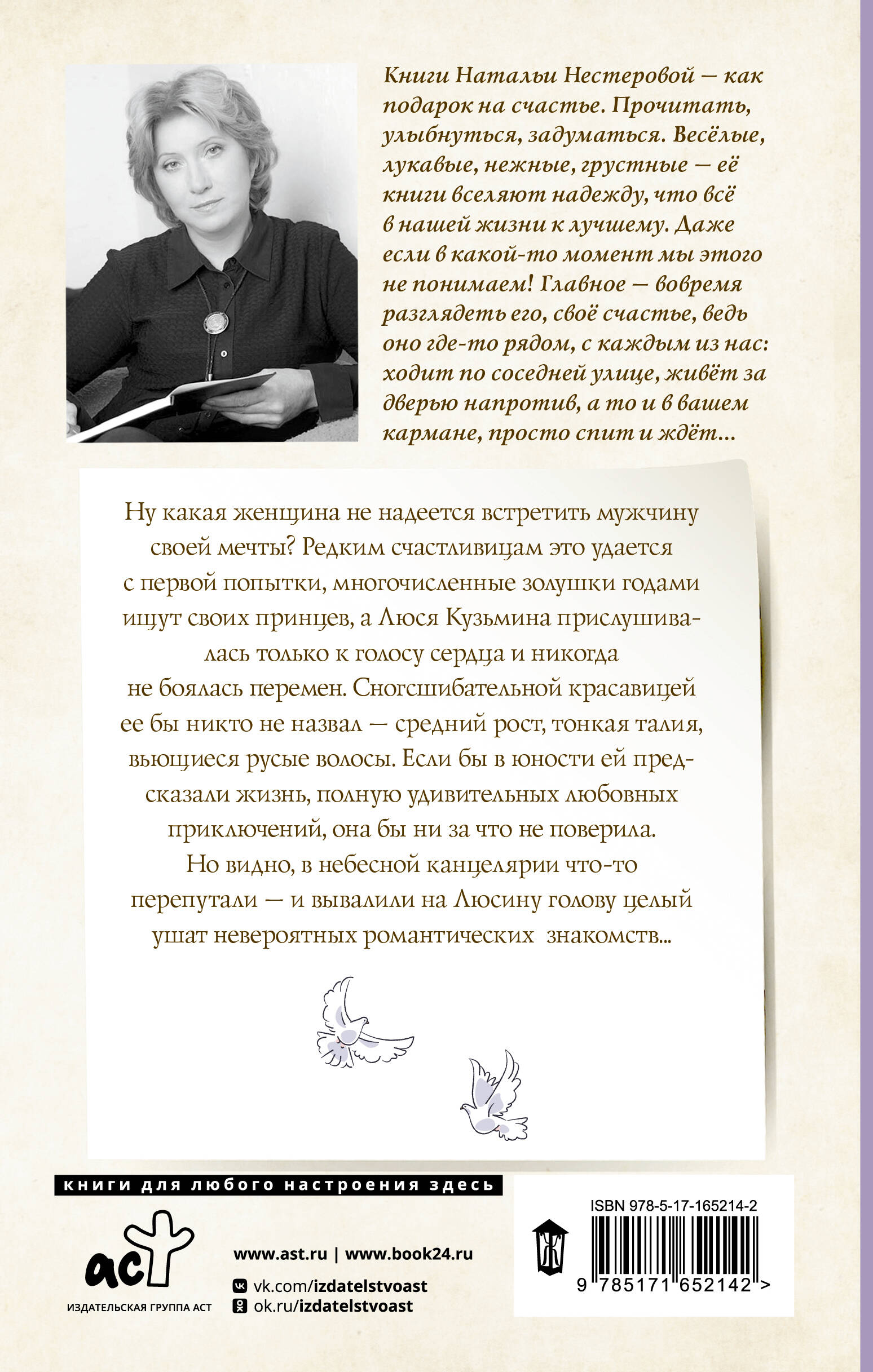 Ну какая женщина не надеется встретить мужчину своей мечты? Редким счастливицам это удается с первой попытки, многочисленные золушки годами ищут своих принцев, а Люся Кузьмина прислушивалась только к голосу сердца и никогда не боялась перемен. Сногсшибательной красавицей ее бы никто не назвал - средний рост, тонкая талия, вьющиеся русые волосы. Если бы в юности ей предсказали жизнь, полную удивительных любовных приключений, она бы ни за что не поверила. Но видно, в небесной канцелярии что-то перепутали - и вывалили на Люсину голову целый ушат невероятных романтических знакомств…| Издательство | Издательство "АСТ" |