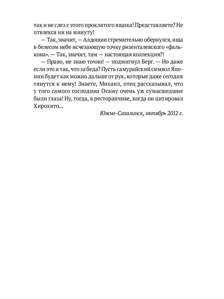 Вячеслав Александрович Каликинский (р. 1951) - прозаик, журналист, член Союза писателей России, лауреат ряда журналистских премий, в том числе премии имени А. П. Чехова. Живет и работает в Южно-Сахалинске. Серия книг "Агасфер" - это цикл шпионских ретродетективов, посвященных работе контрразведки России в конце XIX - начале XX века. Завершается Вторая мировая война. Япония капитулирует и сдаёт победителям все имеющееся оружие, даже коллекцию древних мечей, символизирующую боевой дух империи. Самолет, доставляющий раритет на американский крейсер, из-за сложных погодных условий совершает вынужденную посадку на Сахалине, где пилоты прячут ценный груз. Но их самих захватывает остаточная группа японских солдат. След коллекции теряется. Проходит много лет, и ее начинают искать, чтобы вывезти из России. Однако в игру, которую ведут различные стороны, неожиданно вмешивается историк и писатель Андрей Берг, японский подданный с русскими корнями.| Издательство | Т8 RUGRAM |